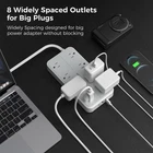 Power Strip Surge Protector, TESSAN Flat Plug Extension Cord with 8 Outlets 3 USB Charger(1 USB C), 1080 Joules Protection, Wall Mountable Charging Station for Home Office School Dorm Room Essentials Are you looking for a cost-effective surge protector power strip with usb? This TESSAN 8 outlet power strip can meet your most needs. Widely spaced power strip Special design widely spaced ac outlets are separated enough to fit big plugs without blocking each other, 8 outlets/sockets and 3 USB charging ports in 1 power strip which allow you to charge 11 devices at the same time, suitable for most phones, tablets, and other appliances. Power strip with surge protection This heavy-duty surge protector will help protect your valuable electronics from potentially damaging power surges and spikes. Fits for homes or offices with sensitive equipment such as computers, printers, TVs, and more, the surge protector provides defense when you need it most. Wall Mountable Design This flat plug power strip with 4 mounting holes on the back, and the long extension cord 6 ft allows this wall mount power strip to be securely installed in various applications, such as workbenches, wall mounts, floor mounts, under counters and more. You can install the power strip with only 2 mounting screws according to the mounting template paper is included, the third screw is spare. Note: This surge protector supports 100V-125V~input, please make sure the input voltage does not exceed 125V. The total wattage of connected devices must not exceed 1875W. MORE BENEFITS 11 in 1 Power Strip: This flat power strip could turn 1 socket into 8 widely spaced outlets and 3 USB (1 USB C), can charge 11 big plugs simultaneously without blocking, keep your desktop organized; You can use it in any indoor place such as home, office and dorm room 6 FT Flat Extension Cord: With only 0.31 in ultra thin flat head design, flat plug power strip can easily fit in tight spots and hide behind sofa, bed, nightstand or other furniture; 45° right angle design create an extra space for other plug below without blocking USB C Power Strip: Dual USB A ports features 2.4A, the USB C port features 3A; 2 types of USB ports can detect charged devices and deliver optimal charging speed, giving you more charging options; idea for USB devices like cell phone, tablet, earphone, etc 1080J Surge Protector Power Strip: Equipped with overload protection, short-circuit protection, over-current protection, and etc; Reliable on/ off switch can automatically shut off and protect your expensive electronics, providing you with a safe and reliable charging environment Wall Mountable Design: 4 mounting holes design allow this white extension cord securely installed in various applications, such as workbenches, wall mounts, floor mounts, under counters and more; 4 rubber feet at the bottom efficiently keeps it from slipping and sliding