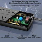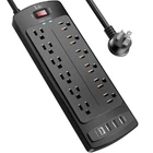 Specifications: Input Voltage: 100-240VAC; 60HZ Max.Current: 15A Max.Power Rating: 1875W USB Port Output: DC 5V, Total 3.4A Surge Protection Rating: 2700 JoulesCord Length: 6 Feet; Item Dimensions: 10.1*3.8*1.2 in; Package list: 1 x Surge Protector Power Strip with usb Port 1 x Instruction manual 1 x Paper Box 【Power Strip with 12-outlets & 4 USB Charging Ports】- Power strip surge protector with 12AC outlets & 4 USB charging ports (5V/3.4A, 17W), 6 feet Heavy Duty extension cord(1875W/15A), surge protector (2700 Joules) with overload protection protects against spikes and fluctuations. 【Surge Protector Power Strip with usb】- 2 sets of outlets arranged on different directions, with 6-foot 15A/1875W power cord, easy to use for all types of adapters. 4 USB ports total 3.4 A/17W, each USB A port features 2.4A Max output. Built- with smart technology, detecting charging devices and deliver optimal charging speed automatically, compatible with Kindle and most USB devices. 【12 AC Surge Protector Outlets】- The 3 level complementary Surge Protector Circuit which composed of TVS (transient voltage suppressor), MOV (metal oxide varistor), GDT (gas discharge tube), with minimum 2700 Joules energy absorbing capacity, could protect your devices much more quickly and reliably than other brand’s 1 level MOV Surge Protection Circuits. 【Safety and Certificate】- ETL safety certified, with extension cord and other major components certified by UL. The over current protection switch limits the power strip's working current to certain setting, so it will not get hot during usage. Environmental protection and fire-resistance PC shell with flame retardant at 1382℉ makes it more durable and longer lifetime. 【What You Get】- Power strip, Maunal, 30-day return, our worry-free 12-month, and reliable customer service will respond to you within 24 hours.