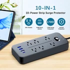 Power Strip is a must-have for your home or office, providing an all-in-one power solution with advanced surge protection and overload protection capabilities. With multiple AC outlets and USB ports, this power strip can support up to 10 electric devices simultaneously, making it convenient for charging smartphones, tablets, laptops, and other USB-enabled devices. The power strip is equipped with a flat plug, allowing it to fit into tight spaces and preventing accidents caused by tangled cords. Additionally, the power strip surge protector with 6 AC power outlets & 4 USB charging port, which can support 10 electric devices simultaneously,6 Feet extension cord(1250W/10A),18 AWG pure copper, provides reliable and efficient power delivery, protecting your devices from potential damage caused by power surges. With its user-friendly design and compact size, this power strip is easy to use and can be placed on desks, tables, or any other flat surface. Whether you need to charge multiple devices or protect your electronics from power outages, Power Strip is the perfect choice for your power and charging needs. Outlet Extender Extension Cord with Multiple Outlets: Features 6 AC outlets with a 10A load capacity and an extra-long 6ft extension cord, providing ample reach and letting you power multiple devices simultaneously. Surge Protector Power Strip: This power strip ensures comprehensive protection for your devices from power surges, spikes, and AC contaminations, shielding your electronics from potential harm. Surge Protector with USB Ports: This power strip also features convenient USB ports, offering additional charging options for your advanced electronics. The surge protector with USB ports provides fast and efficient charging for smartphones, tablets, or laptops. Overload and Shockproof Protection: Ensuring your safety is our top priority. This power strip comes with built-in overload protection that cuts off power automatically to prevent damage to your devices during power surges. Plus, its shockproof design provides an extra layer of safety. Compact and User-Friendly Design: The power strip is designed to be compact and flat, making it space-efficient and easily mountable. Ideal for home, office, and studio use.
