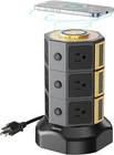Power Strip Tower, SUPERDANNY Surge Protector Tower with 15W Wireless Gold Product Details Product Dimensions: 5.71 x 5.71 x 9.65 inches Item Weight: 2.46 pounds Item model number: SUPERDANNY091-us Manufacturer: SUPERDANNY Brand: SUPERDANNY Color: Gold Total Power Outlets: 12 Voltage: 240 Volts Special Feature: On And Off Switch, Surge Protection, Mountable, USB Slot ⚡【Magnetic Wireless Charger】Thanks to the 15W Magnet Connecting wireless charger on top, you can simply place your cellphone on the charger and it will be automatically aligned by magnet and stay firmly on the charger to be charged (compatibility with magnet alignment feature is required for the cellphone.) ⚡【Powerful and Efficient】The small footprint power tower allocates 12 AC outlets, 4 USB-A (2.4A Max), and 2 USB-C ports (3A Max) on 4 facets vertically, perfect for large bulky plugs or adapters and multiple uses at the same time; With independent switch on each layer, all devices connected to this tower can be managed by one push efficiently with no energy wasted; 5V/4.8A shared by 6 USB ports, 0-2.4A each. ⚡【World-Wide Use & Surge Protector】This power strip surge protector tower (rated current 13A) is designed with dual voltages: 110V~240V, which made it compatible with multiple devices with right adapters through out the world; 1050J surge protection joules is armed to keep your devices away from surge hazard. ⚡【Space Saving and Retractable】The small footprint power tower manages its 6.5ft power cord by rolling the main body, combined with vertical tower design with a small footprint base to offer you a self-adjusting reach to the wall outlet but covers zero extra space, keeping your desk clean and tidy. ⚡【All-Round Protection】Despite indicator for charging and powering status, this 1050J surge protector also adopts all-round protection features with a overload/short-circuit reset button in the base to help bring your power back after overload or shorts (AC outlets only).