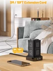 Power strip tower is energy-saving and space-saving because of its high-tech design. The charging station has 8 AC outlets and 4 USB-A, so it supports multiple devices charging simultaneously. Furthermore, it comes with a 10ft extension cord which means you can use the power strip tower to charge for long distances. The most important thing is that the charging station has surge protection and overload protection, so you don't need to worry about safety issues when charging multiple devices. Parameter: Color: Black Material: ABS+PC (Fireproof Materials) Voltage: 110-220V Power Cord Length: 10FT/3M Outlet QTY: 8 AC Outlet USB QTY: 4 USB-A Overload Protection: Yes Surge Protection: Yes Packing List: 1x Power Strip Tower 1x 10ft Extension Wire 1x Instruction Book 12 IN 1 Tower Power Strip 8 AC Outlets & 4 USB Ports: The multi-outlet plug tower supports wide voltage 110V-130V. The 8 AC outlets electrical power surge protector can afford up to 1250W. 4 USB charge quickly charges your electronics Energy Saving: 2 layer has an independent switch that helps you to save electricity when the other outlets are not in use, which could be controlled freely according to demands, protect appliances, and save power Safe & Reliable: This power strip with USB has surge protection, overload protection, short-circuit protection, over-current protection, over-voltage protection, and overheating protection. It will automatically cut power to protect connected devices when the voltage surge is overwhelming. It can protect your laptop, speakers, and printer effectively reducing the impact of surge discharges on the equipment Perfect for Anywhere: The compact tower USB power strip takes up little space on your desk and cleans various cords. This power strip can meet most applications, such as nightstands/homes/office/travel/kitchen/library/coffee shop/gaming room, and so on Worry-Free Purchase: We enjoy and are committed to providing our customers with excellent service and high quality Surge Protector Power Strip 10ft with USB Cord with 12 Month Replacement Service. If you have any questions about our multi-outlet extension cords, please contact us first. We will reply to you within 12 hours and provide you with the best solution