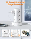 【16 in 1 Power Strip Surge Protector】: Flat plug extension cord could turn 1 sockets into 12 outlets 4 USB, which could charge up to 16 devices at the same time. Mini power strip tower must-have accessories for the college dorm room, home, office supplies and etc. And save your space and make your desktop organized. 【PD 20W USB- C Charge Up Faster 】Upgraded surge protector added USB-C ports can up to PD 20W. 4 power strip with USB port charge together can up to 15W/5V/3A max. Built-in with smart technology, detecting charging devices and deliver optimal charging speed automatically.automatically. 【Right Angle Flat Plug & 6.5FT Extension Cord】With only 0.48 inch plug and 45° right angle design, the flat plug power strip which can close to the wall easily, and hide in the back of furniture, bed or refrigerator; 6.5ft extension cord is made of pure copper, which has better current carrying capacity (13A). 【Travel Power Strip Must Haves / Suitable for Any Occasions】- The compact size mini surge protector tower it's a must have Travel accessories. The surge protector power strip is small size and lightweight, easy to carry and best for travel essentials. Power strip flat plug with 4 anti-slip rubbers bottom, the 6.5 FT extension cord can be stable on your desktop or nightstand without slipping off. 【Multiple Safety Protection & After Service】 -This power strip has overload protection, short-circuit protection, over current protection, over-voltage protection and overheating protection. Environmental protection and fire-resistance PC shell with flame retardant at 1382℉ makes flat plug surge protector more durable and longer .(provides 12-month free worry. 24h .)