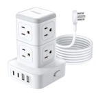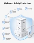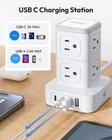 Compact 12-in-1 Power Strip Tower: Featuring 8 AC outlets, 2 USB-A, and 2 USB-C, the surge protector tower can charge 12 devices simultaneously. Compact 4.8in X 3.35in X 2.2in size takes up less space on a desk of your home office or dorm room, keeping your desk organized and efficient. USB Charging Station: The power strip with 4 USB ports gives you more charging convenience and options, perfect for mobile phones, tablets, headphones, and other USB devices. No need for additional adapters anymore. The USB-C port is 5V/3.0A max and the USB-A port is 5V/2.4A max. Surge Protection & Overload Protection: 1080J surge protector outlet protects your electronics from power surges and lightning strikes. The 1250W 10Amp circuit breaker automatically cuts off the power when the power strip is overloaded to keep your expensive devices safe. Mountable Space Saver Design: Say goodbye to cluttered desktops! Not only does the compact vertical charging station save precious surface space, making your desktop more organized and tidy than traditional extension cords but also the keyholes on the bottom of the power tower ensure secure installation under desks or tables. Hassle-Free Purchase: No worries at all if the return window closes after 1 month. Directly us within the *18-month for quality-related or . power strip tower surge protector is also backed by *$300, 000 connected device liability insurance.
