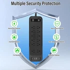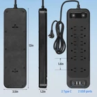 Power Strip with Surge Protector, Extension Cord Multiple Outlets, Black Product Details Product Dimensions: 11.81 x 3.54 x 0.1 inches Item Weight: 1.19 pounds Item model number: Power Strip Surge Protector 12B Manufacturer: Lemonsea Country of Origin: China Brand: lemonsea Color: Black Total Power Outlets: 12 Voltage: 110 Special Feature: On And Off Switch, Surge Protection, Usb Slot 【Power Strip with USB Ports】Power strips with surge protector(2700 Joules), desktop multicontact power strips is made of environmental protection and fire-resistance PC shell. The usb power strip of the surge protector outlet will automatically reduce power to protect connected devices when a voltage surge is detected. 【Overload Surge Protection】This power strip has overload protection, short-circuit protection, over current protection, over-voltage protection and overheating protection. The surge protector with overload protection protects your electrical appliances from lighting, surges or spikes. 【12 Outlets Power Strip with 4 USB Ports】The power strips with 12AC widely outlets and 4 USB charging ports and two independent switches, each USB port features 5V/3.1A Max output, can power up to 12 devices simultaneously. Wide range voltage design, can be used on 110v to 125v circuit. 【Flat Plug Power Strip&Extension Cord Design】The flat plug power strip has a 6 feet long extensions cord,there are two T-shaped holes on the back of the surge protector outlet, which can easily mount this extension cord flat on the wall. The 45° angled flat plug is perfect for tight spaces like bedside tables or behind TVs and will not block the bottom socket. The extra space between the power strips provides ample room to plug and unplug your electronic devices. 【Quality and Service】The surge protector power strip has passed UL listed, and the overcurrent protection switch limits the operating current of the power socket to a certain setting range. If you have any questions about it, you can contact us anytime, we are willing to serve you, our products are always reliable.