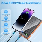 [High-Capacity] With 33800mAh premium Li-polymer battery, this solar power bank can charge your devices multiple times. It can be recharged via adapter and solar power, free your worries of poweroff.The super battery life allows you to get rid of the anxiety and worries about the depletion of the device power anytime and anywhere [Built-in 4 Charging Cables] This power bank is built with 3 output cables ( Type C*1 & iOS*1 & Micro USB*1) and 1 USB-A input cable. No matter output or input, you don’t need to carry charging cables. Get rid of messy cables, charge at anytime and everywhere [High-Capacity] With 33800mAh premium Li-polymer battery, this solar power bank can charge your devices multiple times. It can be recharged via adapter and solar power, free your worries of poweroff.The super battery life allows you to get rid of the anxiety and worries about the depletion of the device power anytime and anywhere [Charge 6 devices simultaneously].With 3 built-in output cables (iOS & USB-C & Micro USB), 2 output ports ( USB-A*1 & USB-C*1), and a wireless charging area, this power bank supports charging 6 devices simultaneously. It is the most in the market. With 1 USB-A input cable and 2 input ports (Micro & USB-C), it offers five ways to be recharged. ALL charge methods are included, it keeps all your devices powered and getting rid of messy cables [Advanced Wireless Charging] This solar charger power bank is equipped with a wireless charging area, just put your device on it, and gets charged, very convenient to use. It is compatible with all wireless-enabled devices, such as iPhone15/14/13/12/11/X series, Samsung Galaxy S23/S22/S21 series, etc. Make your charge cable-free [Safe Material and Comfortable Design] The outer case is made of flame-retardant ABS+PC materials. The waterproof silicone better protects the internal structure of the charger. Rubber skin-feel oil coating process to form a protective film on the surface, comfortable touch, and exquisite appearance