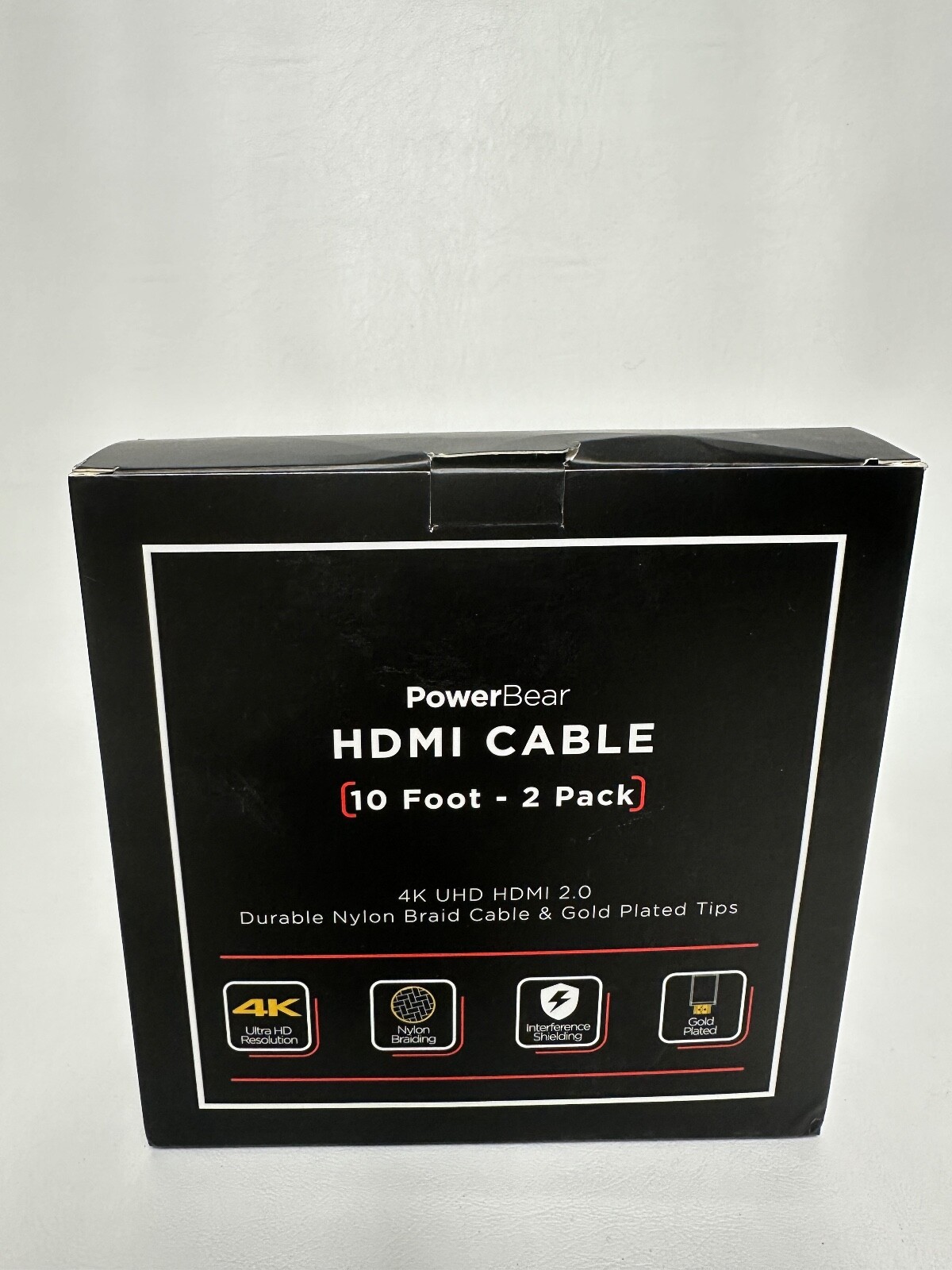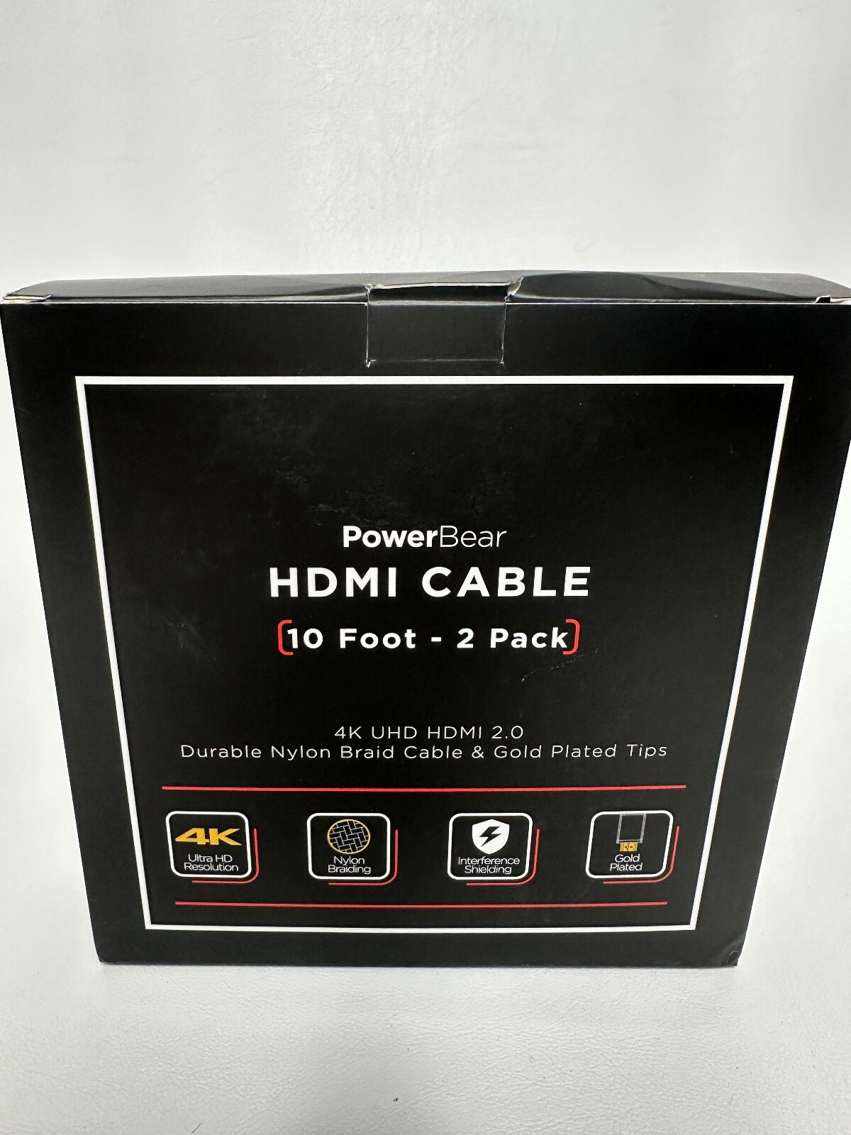 New PowerBear HDMI Cable 10 Ft 4K UHD HDMI 2.0 Nylon Braid Cable & Gold Plated Tips
