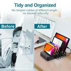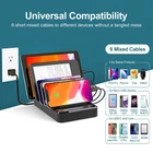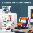 This listing for new in box Powstick Charging Station for Multiple Devices 5 Ports with 6 Mixed Charging Cables Multi USB Charger Station Organizer for Cell Phones Tablets Tab Electronics Tech Gadget CHARGING STATION FOR MULTIPLE DEVICES - One charger, five devices. The USB Charging station centralize your family¡¯s charging need in an organized way. NO MORE MESS - comes with 6 short charging cables, 3 cables for phone Products, 2 micro USB for Android and 1 USB-C cable for more electronics, multi USB charger station eliminate the clutter, tangle and chaos of long cords everywhere. FAST AND SMART CHARGING - The USB fast charging station has 5 high-power 2.4A USB charging ports for multi devices like tablets, smartphones, which charge much faster than regular 1A USB chargers! Compact size 7.5 x 5 x 2 inch, 0.79 inch width between slots. Organizer design USB charger station is perfect to charge devices, store safely or use as a stand. SAFETY & PROTECTION ¨C Made with Fire-resistant PC material, equipped with rubbery base and silicone tape on the USB Charger Docking Station. It has a good grip for holding all devices, preventing from getting scratched or sliding off the dock while being charged. The Multi Charger Station with Smart IC technology protects against over-charge, over current or short-circuits. PLUG & CHARGE - No assembly need, no annoying baffles installation. Fixed and sturdy dividers in Armor Style, keeps kids from misplacing the Pads as well as keeping track of them. Say goodbye to lost wall charger or cables with this multiple device charging organizer. Nice Multi ports Charging Station for family, kids, friends and guests. 【NOTE】Please ensure Power cord is inserted firmly to the end. UNIVERSAL COMPATIBILITY - This multiple USB charging stand has 5 USB ports that can hold and charge up to 5 devices simultaneously. Not only a cell phone charging station, it also supports all USB-powered devices like Tablets, Tabs, Kindle Fire and other tablets, Bluetooth speakers, game controllers, headsets, portable battery backups and more.