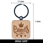 Princess Cursive with Crown and Hearts Engraved Wood Square Keychain Tag Charm