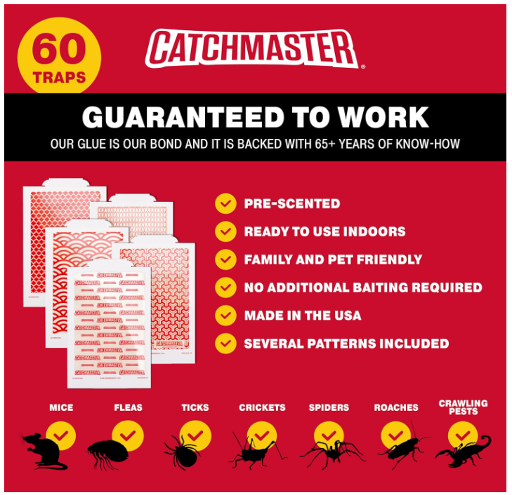 Catchmaster Pro Strength Mouse & Insect Glue Boards 60pk Traps Indoor for Home, Adhesive Bug Catcher, Rat & Rodent Sticky Trap, Non Toxic Bulk Pre-Baited Glue Traps, Pet Safe House Pest Control Brand Catchmaster Color White Style Foldable Material Glue Product Dimensions 6"L x 3.88"W x 8.81"H Item Weight 3.1 Pounds Number of Pieces 60 Is Electric No Target Species Mouse Unit Count 60.0 Count About this item READY TO USE: Insect and Mouse glue traps are pre-scented and are intended for use without additional mouse bait. For best use, leave the mouse trap with paper on so pests can acclimate to the trap, then place the glue board along known or suspected rodent pathways. YEAR-ROUND PROTECTION: Catchmaster glue traps for mice and rats are safe, non-toxic and mess-free. The insect and mouse traps are perforated to tear off and place glue directly against baseboards to secure traps and prevent drag offs. When placed in an area with normal conditions, mouse traps indoor for home can last up to one full year. NO MESS CONVENIENCE: The bulk pack of disposable sticky traps for mice and rats is made with professional strength adhesive and can fold into a tunnel shape for use in tight or dusty areas. The sticky mouse trap can be used as a standalone trap or as an insert for other Catchmaster traps. TOTAL COVERAGE: The glue mouse pad trap can be used indoors in residential, commercial, or industrial buildings, and sensitive areas where rodenticides or snap traps are undesirable or prohibited. Our 60M glue boards cover 30 sq. in. and are proudly made in the USA, fast acting and non-toxic. INTELLIGENT PEST MANAGEMENT: At our core, we are dedicated pest detectives. We believe in utilizing a science-based approach to integrated pest control. We call this approach Intelligent Pest Management. We leave no stones unturned when it comes to pests. . We offer FREE shipping on all orders! . We ship within Five business days of payment, usually sooner. . We use a selection of shipping services such as UPS, FedEx, USPS etc. . We only ship to the lower 48 states, no APO/FPO addresses or PO Boxes allowed. . Local pickups and combined shipping options are not provided at this time. . Your satisfaction is a wonderful reward for our efforts. Please assist us by leaving a positive review if you feel pleased with our service. . In the event that you encounter any difficulties related to your order, please do not hesitate to reach out to us directly through the Messaging system on the Ebay platform. Kindly consider opening a COMPLAINT or a RETURN REQUEST as a last resort, only after all other possible measures have been attempted and we have been unable to provide you with assistance. . We will get in touch with you within 24 hours and make every effort to ensure your satisfaction. . Please rest assured of our service quality.