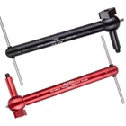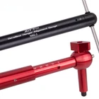 Simple to use The Derailleur Hanger Alignment Gauge can help solve a multitude of derailleur shifting problems, most notably with index shifting systems. This tool is extremely steady in operation. The tool threads directly into the derailleur hanger. The gauge bar holds a gauge which marks the distance to the wheel. The gauge then is rotated with the wheel to the 3, 6, 9, and 12 o'clock positions, noting any differences in measurements. The alignment of the derailleur hanger is accomplished by applying pressure to the tool's arm. The results can be checked instantly. Gauge bar made of heavy gauge, chrome plated steel Adjusts to fit 20" to 29"+ wheels Replaceable threaded tip Upgraded large inner shaft for added strength Tighter tolerances for improved accuracy Improved clearance and reach to fit more frame/hanger combos including low clearance thru-axle derailleur hangers HAG-3 - Aluminum alloy