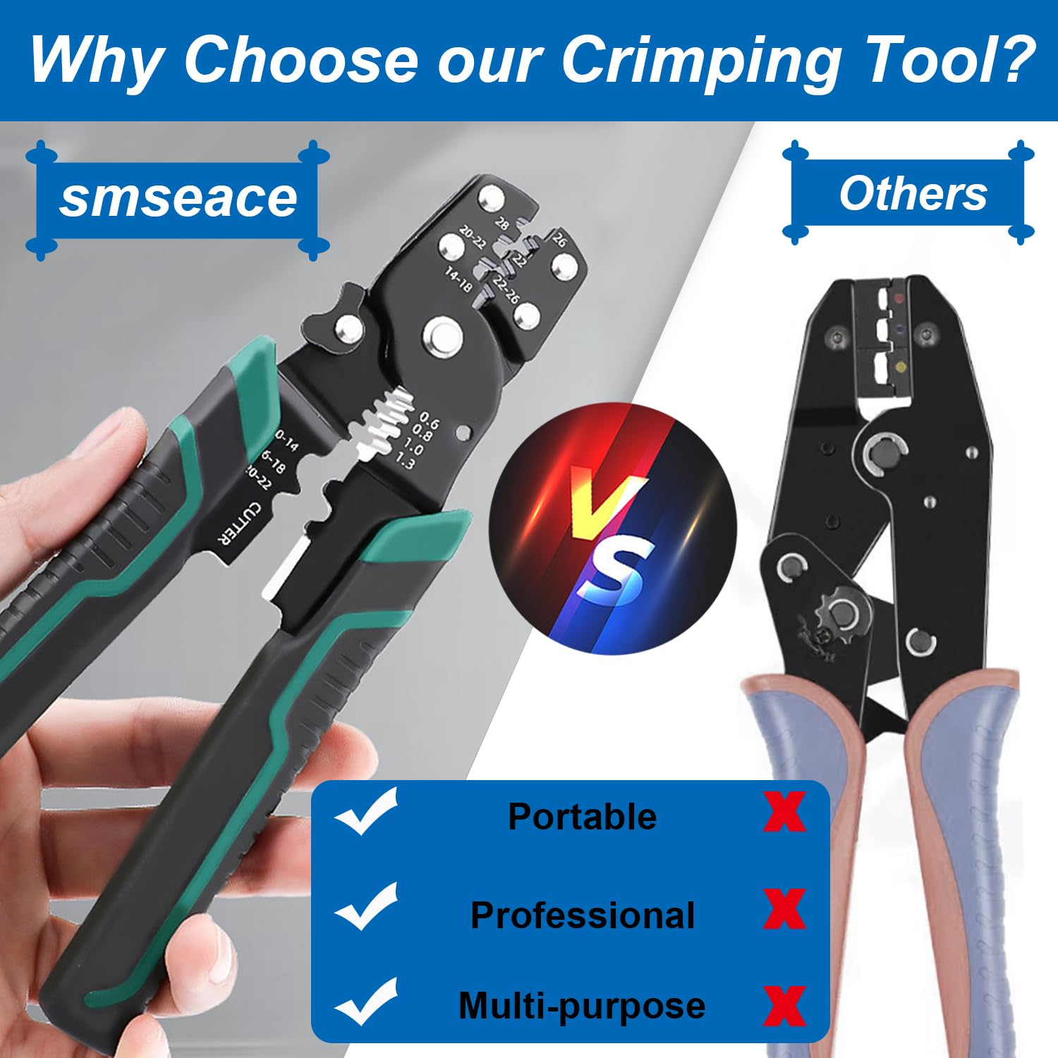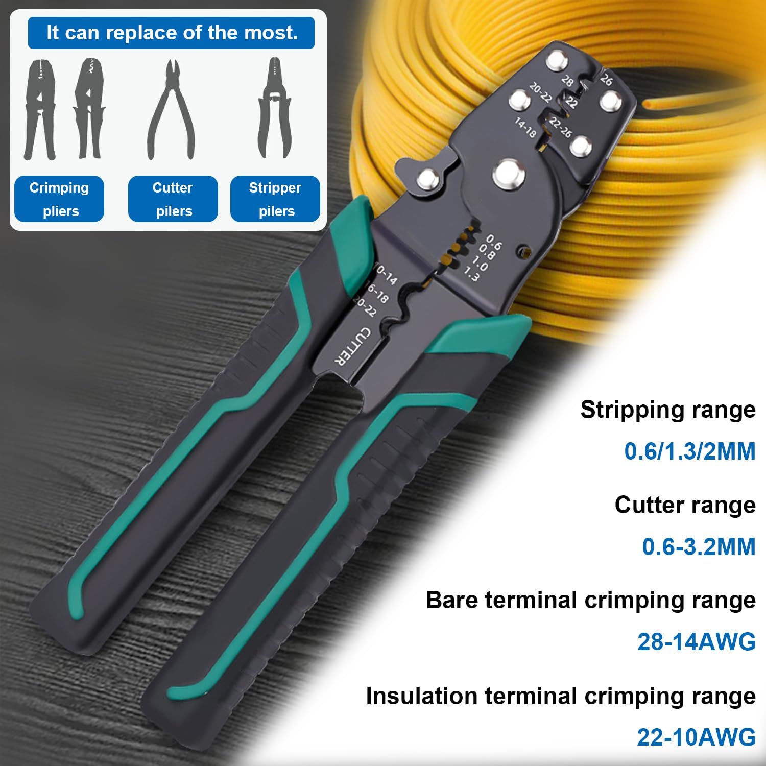 This crimping tool is a game-changer! It strips, crimps, and cuts wires with precision, eliminating the need for multiple tools. The sturdy CRV steel construction ensures durability, and it effortlessly handles wire gauges from 22 to 10AWG. Perfect for insulated or bare connectors, it simplifies every wiring job. No more juggling tools—just smooth, reliable performance every time. A must-have for DIYers and pros alike!