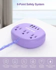 【Cute Power Strip with USB C Ports】Compare with other 15W power strips, the purple power strip provice 2 usb-c for Apple devices, each can charge up to 5V/2.4A Max, all usb ports output is 5V/4.8A, 24W max. Multiple usb charging station with smart charging technology, it can automatically detect your connected devices and can achieve faster charging efficiency, which would charge your devices WITHOUT a variety of converters. 【7-in-1 Design Desk Charging Station】The flat plug power strip with 3 outlets + 4 USB ports can safely charge up to 7 devices from a single small wall charging unit. Max Capacity Up to 1625 Watt(Max 125 Volt, 13 A). Compatible with cellphone, laptop, tablet, earphone or cameras without a variety of converters,keep your desk organized, a must have accessories for cute, purple, kawaii, lavender, and etc. 【Multiple Safety Protection】Kawaii Extension Cord has surge protection, over-voltage protection, short circuit protection, grounded protection, over-current protection. The MAX energy-absorbing capacity of 1080 Joules, protecting your electrical appliances from lightening, surges and spikes at home, office dorm etc. 【 Compact and Lightweight】At only 9 oz, 4.3*3.3*1.1 inch mini size, 0.43 inch slim head and 45 degree right angle design, which is much slimmer than traditional plugs, can close to the wall easily and hide in the back of furniture, no waste for outlet and space. 5 Ft 0.15 inch Slim extension cord is made of pure copper, which has better current carrying capacity (13A), not easy to deform, durable and more safety. 【Reliable Safety】Flexible extension cord is made of high strength fire-resistance PC shell, making it fireproof up to 1382 F. High-end solid capacitors ensure complete protection against electrical short circuit, over heat, over charging, over current and over voltage danger. Certificated by ETL, it is 100% safe for you to use it.