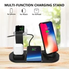 Product Description: Fashionable design and high quality. The 360°rotatable charging base allows you to charge iPhone / iPad / Micro USB / USB Type-C Android phones or tablets. 3 USB Charging Station + Qi wireless Charging function + Apple Airpods It supports 7.5W fast charging for Apple and 10W fast charging for Samsung Specially designed to wirelessly charge the Apple iWatch. Not suitable for charging other brands of smart watches. The charging dock uses automatic power-off technology, which can effectively prevent overcharging, overcurrent and overvoltage protection, temperature control, and foreign object detection. It can well protect your device battery from overcharging damage. Innovative silicone materials won't scratch your iPhone/iWatch/AirPods. NOTE: Apple iWatch charger is NOT included. Please install your original charger. Wireless charger not compatible with thick phone cases such as Otterbox. QC wall adapter not included. Package Includes: 1 x Multifunctional Charging Dock ( Built in Charger Cable ) 1 × User Manual