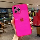 Qekaum Compatible with iPhone 11 Case| Neon Clear Case with Camera Lens Cover Shell for Women Girls Slim Soft Silicone Protective Transparent Girly Case for iPhone 11| Neon Pink
