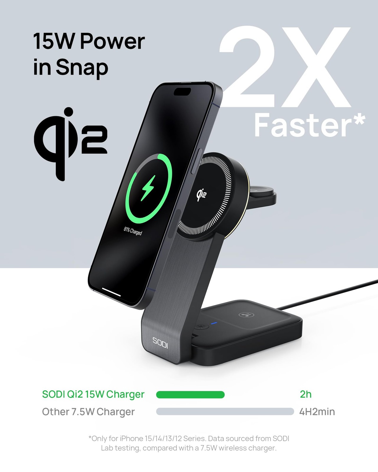 QI2 3-in-1 Wireless Charger Station - 15W Qi2 Mag-Safe Charger Stand for iPhone, Apple Watch & AirPods, Wireless Charger for Multiple Devices iPhone 16/15/14/13&Watch&AirPods Enhanced Qi2 Magnetic Charging Technology: Experience unparalleled charging speed with the advanced Qi2 magnetic technology, supporting 15W wireless charging for iPhone 15 and above. 3-in-1 Wireless Charging: Seamlessly charge your phone, earphones, and watch simultaneously with our versatile wireless charging solution. Slim, Foldable Design for Easy Portability: Travel effortlessly with the lightweight, foldable design that allows for convenient storage and multiple adjustable angles for various usage scenarios. Multiple Protection: Equipped with an MCU and charging management chip, our device offers multiple protection and alarm functions, including overcurrent, overvoltage, and foreign object detection. Triple Heat Dissipation: Features an advanced cooling system with an independent temperature sensor, heat sinks, and a vented structure to ensure efficient heat dissipation.