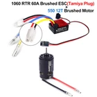 9IMOD RC Brushed Motor ESC Combo 1060 RTR 60A ESC Electronic Speed Controller 2-3S LiPo Waterproof BEC 6V3A with 540/550 12T 21T 27T 35T 45T 55T Motor for 1/10 Axial SCX10 Traxxas TRX4 TRX6 D90 HPI Redcat Tamiya RC Car Crawler Truck ESC Features: 1. Brushed ESC, 60A 2-3S, BEC 6V3A. 3 running modes: Forward / Brake, Forward / Reverse / Brake, Forward / Reverse. Compatible with 1/10 RC Car Brushed motor 550, 540, 380, 370, and other below models. 2. Waterproof and dustproof design. Input Battery Types: NiMH/LiPo battery. 3. Multiple protection: Overheat protection, low battery voltage cutoff, and throttle automatic detection. 4. This product uses 8 low internal resistance, high current MOS tubes. The strong resistant current capability, excellent heat dissipation. 5. Multi functional parameter settings, using tuning to set parameters, simple and convenient. NOTE: Recommend using 2S batteries, 3S batteries may be damaged BEC! Descriptions: Waterproof and dustproof 1060 RTR 60A Brushed Electronic Speed Controller, perfectly fit for 1/10 1/8 RC car. Strong resistant current capability and excellent heat dissipation. This ESC is designed for 1/10 scale RC car with high-frequency drive system and low-resistance field effect tube. Built with the high quality components, it features excellent acceleration and throttle linearity to ensure high operation and provide a stable driving. Specifications: Item Name: 60A Brushed Waterproof ESC Model: 9imod-1060-RTR Color: Black Constant Current: 60A Burst Current: 480A BEC: 6V / 3A Power Supply: 2-3S LiPo battery, 5-9 cell NiMH battery Suitable for: 1:10 RC Cars/Boats/Tanks Item Size: 36 * 31 * 20mm Water proof: YES Plug: T Plug/XT60 Plug/Tamiya Plug(optional) Running Modes: Forward / Brake, Forward / Reverse / Brake, Forward / Reverse Motor Feature: 1.Retaining rings. 2.High Temperature Resistant Wind Blade. 3.Excellent torque and driveability. 4.Removable/Replaceable rotor. 5.Precision engineered for maximum energy conversion. Specifications: Item brand: SURPASS HOBBY Item name: Brushed Motor Size: 540 Color: Black Turns: 35T/45T/55T Motor shaft: 3.175mm Flat position: 0.4mm Axle Length: 12mm Connector: 3.5mm gold Suitable for: HSP HPI Wltoys Tamiya FS Kyosho TRAXXAS Yokomo RC Car. Diameter: 35.7mm Length: 53.5mm Net weight:163g Size: 550 Color: Black KV(RPM/Volt):12T / 21T / 27T / 35T Max voltage: 7.2V No-load current: 2.3A No-load speed: 13000 rpm Load current: 6.3A Motor shaft: 3.175mm Flat position: 0.4mm Axle Length: 16.5mm Line length:11cm Connector: 3.5mm gold Suitable for: HSP HPI Wltoys Tamiya FS Kyosho TRAXXAS Yokomo RC Car. Diameter: 35.6mm Length: 57.5mm Net weight: 240g Package Included: 1 * 1060-RTR 60A ESC Motor Combo Note: Only the above package content, other products are not included. 1.Due to the difference between different monitors,the picture may not reflect the actual color of the item. We guarantee the style is the same as shown in the pictures. 2.Due to the manual measurement and different measurement methods, please allow 1-3mm deviation.Thanks! Before purchase: 1.All the goods are ready stock, we will arrange the shipment at once if we receive the order. 2.Please read the item description, if you have any question, do not hesitate to contact us. 3.No warranty,if you receive a defect item,please contact us at once with item picture. 4.Use the vouchers for more saving. After purchase: 1.If you are satisfied,please express your use feeling. 2.Please contact us before you are going to give us bad review. We are helpful and will solve the problems. If you receive a defect item,please contact us at once with item picture or video.