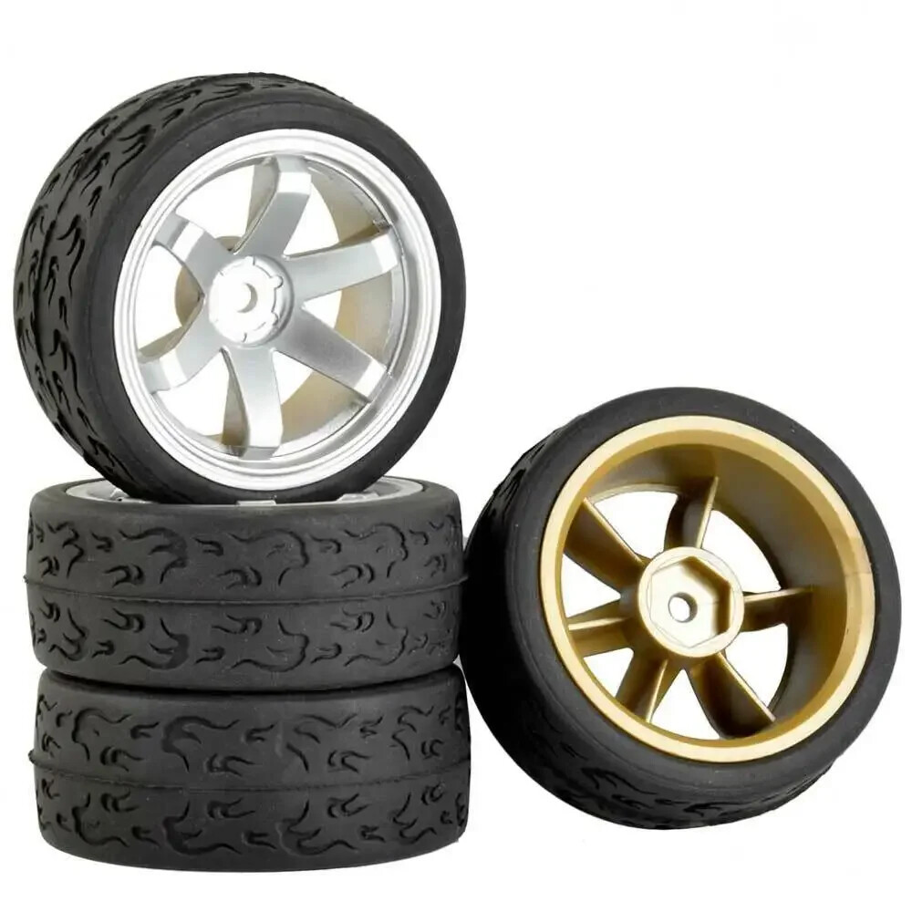 100% Brand New Plastic Wheel / Rubber Tires Outer Diameter : 64mm Width: 26mm Wheel Diameter: 52 mm Wheel Width: 26mm Wheel Drive Hex: 12 mm Offset 6mm Quantity: tiresx4pcs+wheelx4pcs Tires and Wheel Not Glue, You can be split. NOTICE: The wheels and tires are not glued together and must be glued before use. Please carefully check the tire size before purchase, whether it is the same as your model tire size, and confirm it again before payment, so as not to return the refund, thank you, wish you a happy shopping.