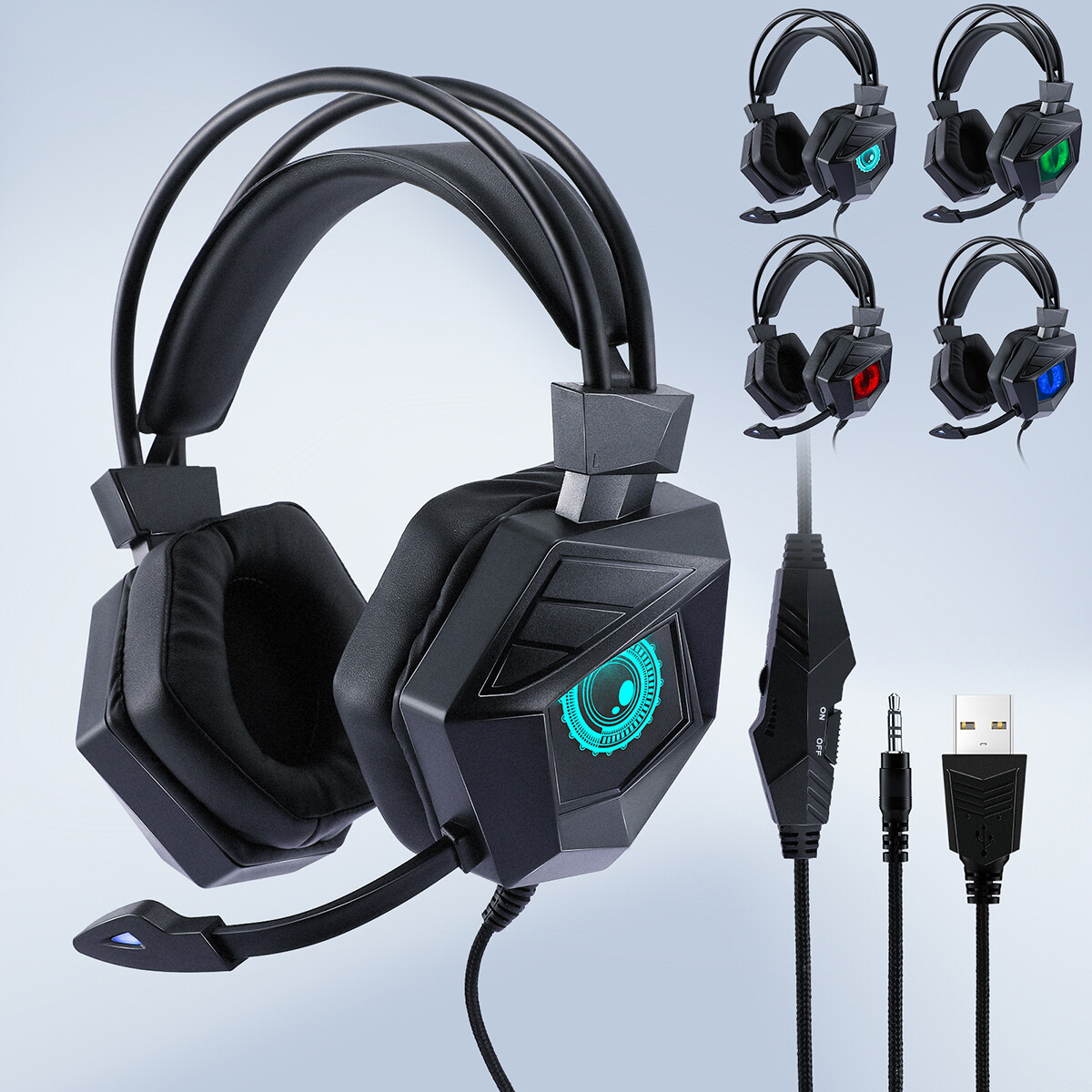 RGB Gaming Headset with Noise Canceling Microphone Surround Sound LED Headphones Warm Reminders : •Shipping from NJ,US. • Strictly Quality Control, 100% Brand new & high quality. •Offer delivery with Tracking Number. •Need 1 business day for Handing & Packing. •Package will arrive in 2-6 days for 48 contiguous states[ not for weekend and holiday] • 60 Days Free Return for Any Reason Features: 1. The headset is applicable to 3.5mm quadrupole single plug audio devices such as laptop, tablet PC, mobile phone, PS4/PS5, Nintendo, etc. With 1 to 2 adapter cable, the desktop computer can be used. 2. Inserting or extracting USB won't affect the mic and sound. USB only for LED light. 3. The headset is equipped with flywheel volume control and one-key mic mute. 4. When using a desktop computer, the 3.5mm plug of the headphones should be inserted into the adapter jack. The red microphone plug of the adapter need to be connected to the computer's microphone port, the black audio plug of the adapter need to be inserted into the computer's audio output port. 5. High Precision Magnetic Driver-Fantastic Quality Sound with a big-bore about 40mm and a high-fidelity horn that ensure the quality of sound. makes you feel like you're right in the middle of your games. 6. Special Fashion Design-With a striking appearance,it would be deeply loved by both adults and boys. 7. Comfortable and Lightweight-The headset has soft padding on the top and around the ears, which makes this a suitable option for long hours of play but doesn't feel heavy on. 8. Adjustable headband according to your head size and 360°adjustable Microphone. 9. Smooth Mic and Volume Control-There is a small controller on the cord, allowing you to turn the mic on and off, and the volume up and down with ease. Specifications: Driver diameter: 40mm Impedance: 32Ω±15% Sensitivity: 110±3db Frequency: 20hz-20KHz Microphone: 4.0*1.5mm Mic sensitivity: -38±3db Mic impedance: 2.2KΩ Speaker material: 40cm steel magnetic speaker Voice principle: dynamic coil Directivity: omnidirectional LED operating voltage: DC5V±5% Cable length: 2.0m Operating current: ≤100mA Headset interface: USB+3.5mm 4pin (1 Plug) Item color: As picture show Headphone size: Approx.19.5*11*22.9cm/7.6*4.3*9inch Compatibility: Laptop, Tablet PC, Mobile phone, PS4/PS5, Nintendo, etc. With 1 to 2 adapter cable, the desktop computer can be used. Package Includes: 1 x Gaming Headset with 3.5mm Audio(1 Plug) +USB cable 1 x 2 in 1 3.5mm splitter cable 1 x User Manual(in Multi-languages) Payment Delivery details Return Policy About us Contact us Payment ☛ We accept Paypal,Credit Card, e-Check . etc. Delivery details US Ship within 24 Hours, approximate delivery time according to different Shipping way ( just estimated, not guaranteed ): • 2-5 business days to buyer in USA via stander shipment, eg.USPS • 2-3 business days to buyer in USA via Expedited shipment, eg.UPS,Priority Mail . Return Policy Free Return, we accept 60 days Money Back or Exchange Guarantee for All Items. About us Linlinstore90 is a department store which focus on Home&Garden,LED Lights,Automotive, Electronic items, Entertainment,Tools items, from indoor to outdoor, daily to work. Items ship within 24 hours from NJ,US. Free shipping, free returning and money back. Contact us For any questions, please contact us at the first time.We will respond as soon as possible.