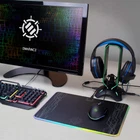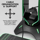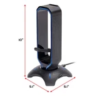3-1 HEADSET STAND FOR DESK: The RGB Headphone Holder Desk is it is an all in one pc gaming accessory. With RGB LEDs Headset Stand, Weighted Base for tilt, 2 USB ports, Mouse Bungee, saving desk space GAMING HEAD SET HOLDER: Display and store your gamer computer headset safely. With a weighted base and rubber grips, the headset holder for desk will not fall down in intense gaming sessions. 7 COLOR CHANGING MODES: Select 7 bright colors or color changing mode via the button on the headphone stand. Give your gaming setup some style with Static LED RGB lights or Dynamic color cycling mode SLICK PC GAMING SETUP: Keep your pc gaming set up clean of wires by using the mouse bungee under the headphone stand for desk, making it easy for cable management with a drag-free feel while gaming. INTEGRATED 2.0 USB PORT HUB: The PC Gaming Headset Holder features USB Ports to connect extra gaming accessories such as wireless gaming headset for pc, gaming keyboard, gaming pc mouse, plug and play