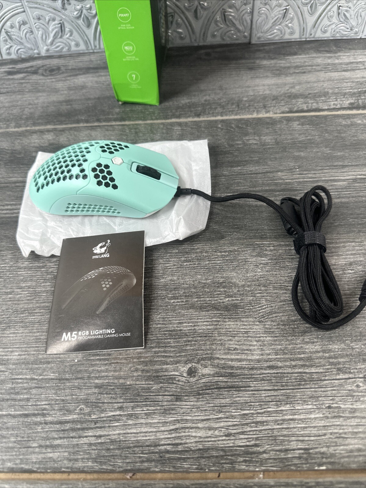 This gaming mouse by Ziyou Lang is perfect for any avid gamer. With its wired connectivity, you don't have to worry about any lag or interference while you're in the middle of your game. The mouse comes in a striking green color, with RGB lights that add a cool touch to your setup. The M5 E-Sports Mouse is designed for optimal performance, with a sleek and ergonomic design that fits comfortably in your hand. It's perfect for all types of gaming, whether you're a first-person shooter or a strategy game. This mouse is a great addition to any gamer's setup, and is sure to give you the edge you need.
