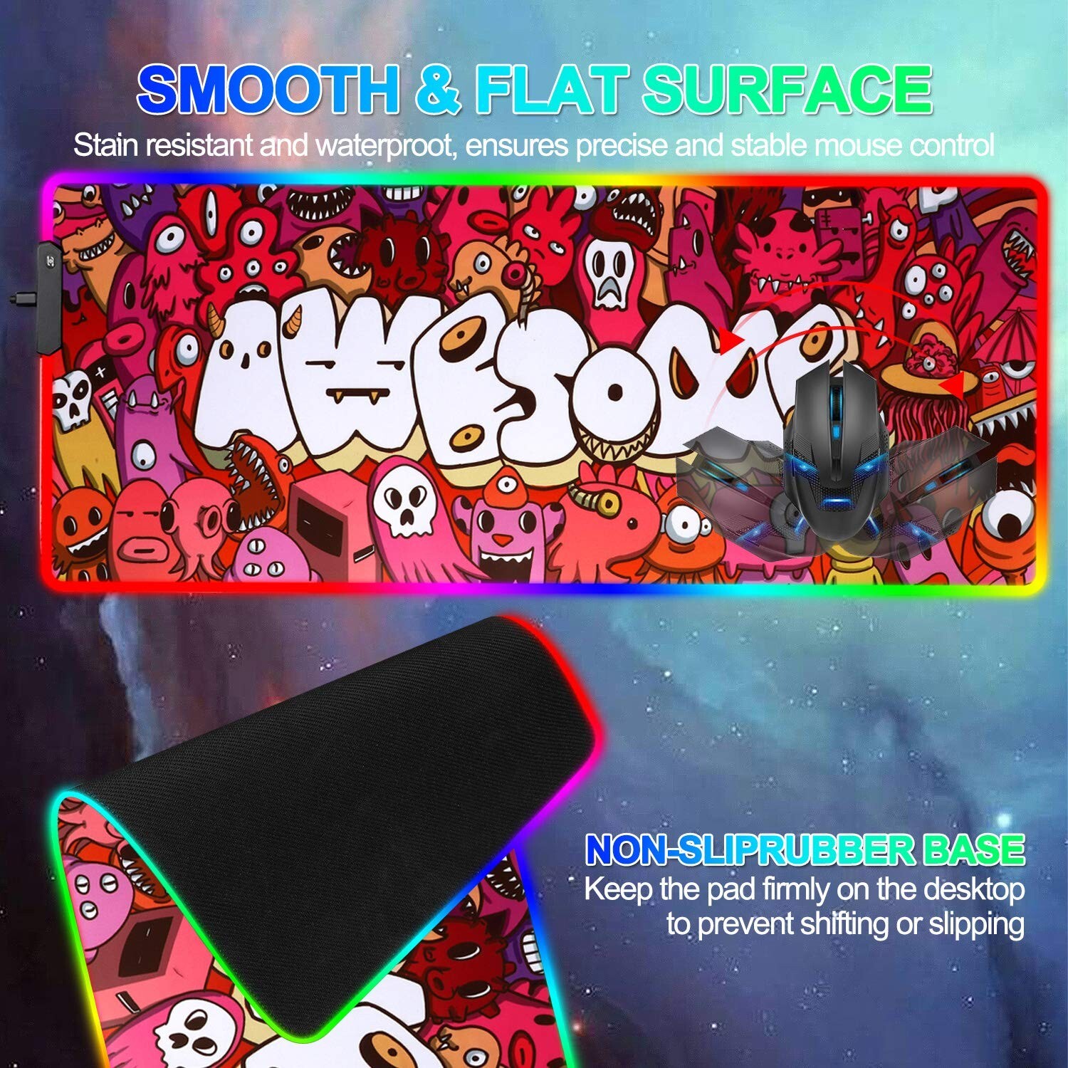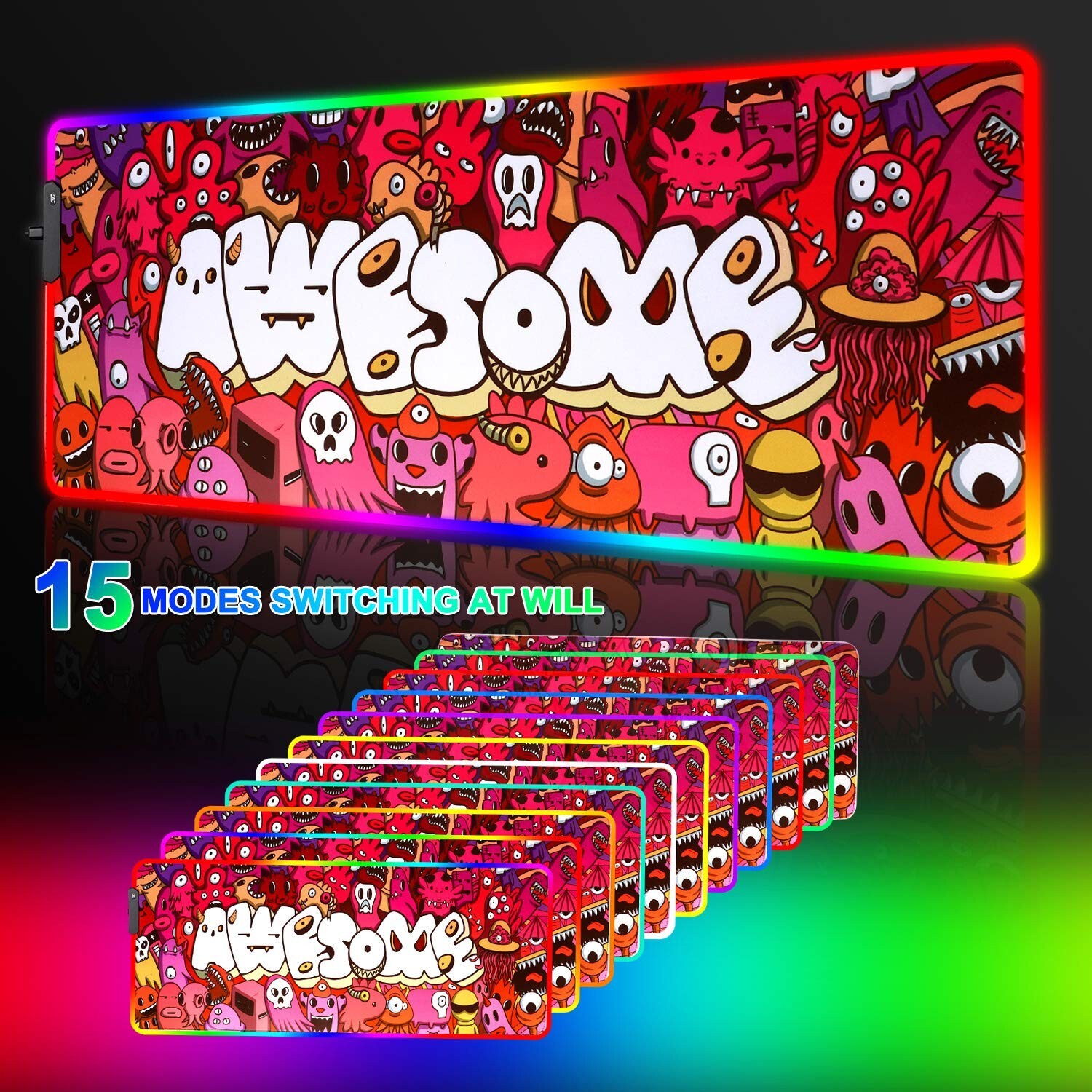 RGB Gaming Mouse pad Large Anime Graffiti Non-Slip Rubber Base Mice Keyboard Mat (Red) ✓ Free 60 Day Returns ✓ Free Express Shipping Description: Features: LARGE SIZE Extended gaming mouse pad size of L(800mm)xW(300mm)xH(4mm) 31.5"x11.8"x0.15"inch will cover the area for a full-sized keyboard and mouse, providing plenty of room for professional gaming or office work. Applies to all types of keyboards and mice. 15 Lighting ModesThe RGB Gaming Mouse Pad features 15 Lighting Modes: includes 9 kinds of Monochromatic Light, 1 kind of RGB Alternating, 2 kinds of RGB Breathing , 3 kinds of RGB Running. This LED RGB Mouse Pad can create a cool gaming atmosphere through Choosing the color mode. ULTRA SMOOTH SURFACE, ACCURATE AND CONTROLLABLEOptimized for fast moving while maintaining excellent SPEED and CONTROL during gaming. The mouse pad offers a smooth tracking surface for your mouse. EASY TO USE, PLUG & PLAYThis RGB mouse pad is powered by USB, plug and play, no driver required. One button control light modes. WATER-RESISTANT SURFACE, ANTI-SLIP RUBBER BASE Waterproof coating prevents damage from spilled drinks or other accidents. Heavy duty rubber base prevents it from sliding around on the desk while using it. Product Details: Material: Rubber Size: Extended Color: A-led Brand: moptmos Item Weight: 180 Grams Manufacturer: moptmos Brand: moptmos Item Weight: 6.3 ounces Product Dimensions: 11.8 x 31.5 x 0.01 inches Item model number: dgg5dda Color: A-led Shape: Rectangular Material Type: Rubber Size: Extended Manufacturer Part Number: dgg5dda Date First Available: June 30, 2020