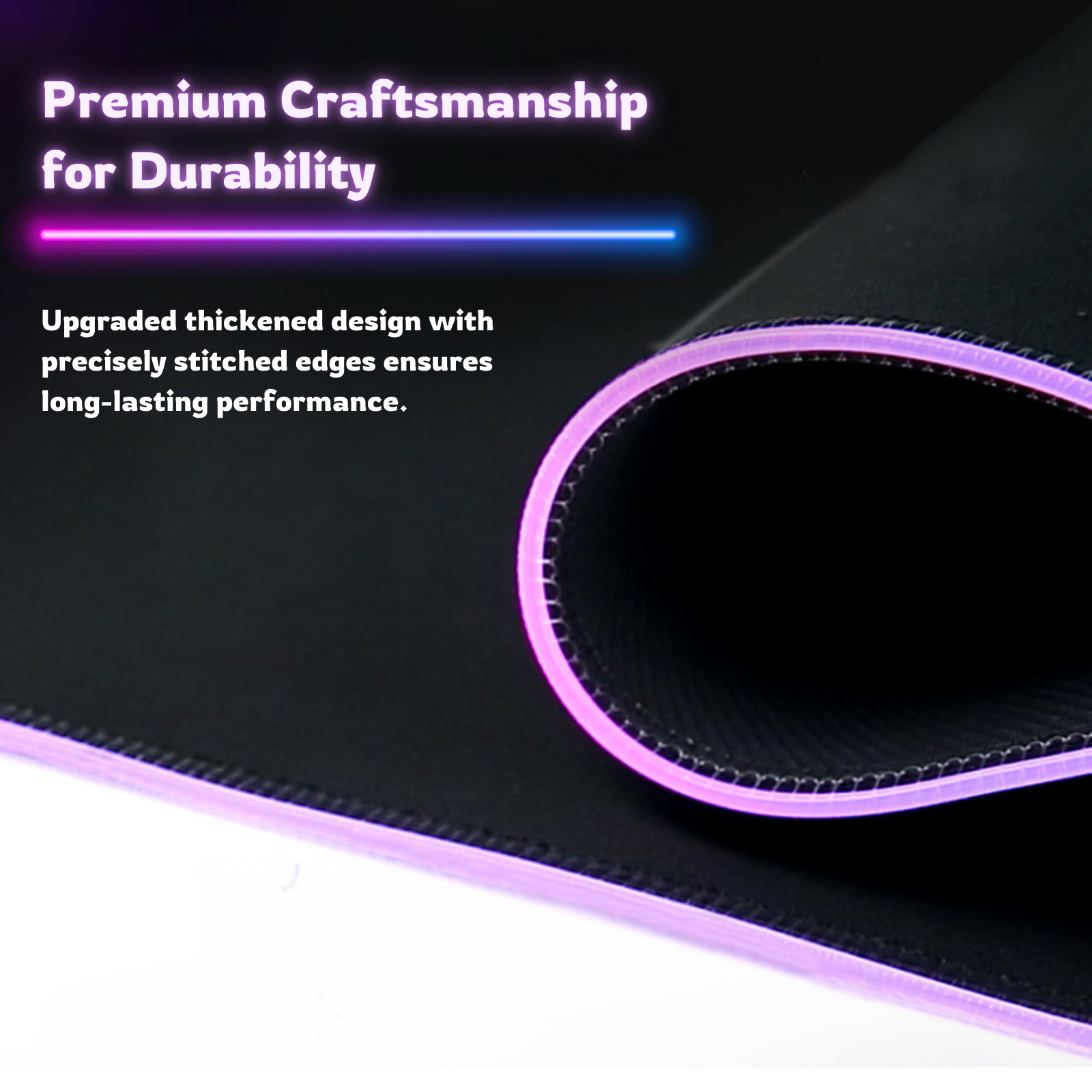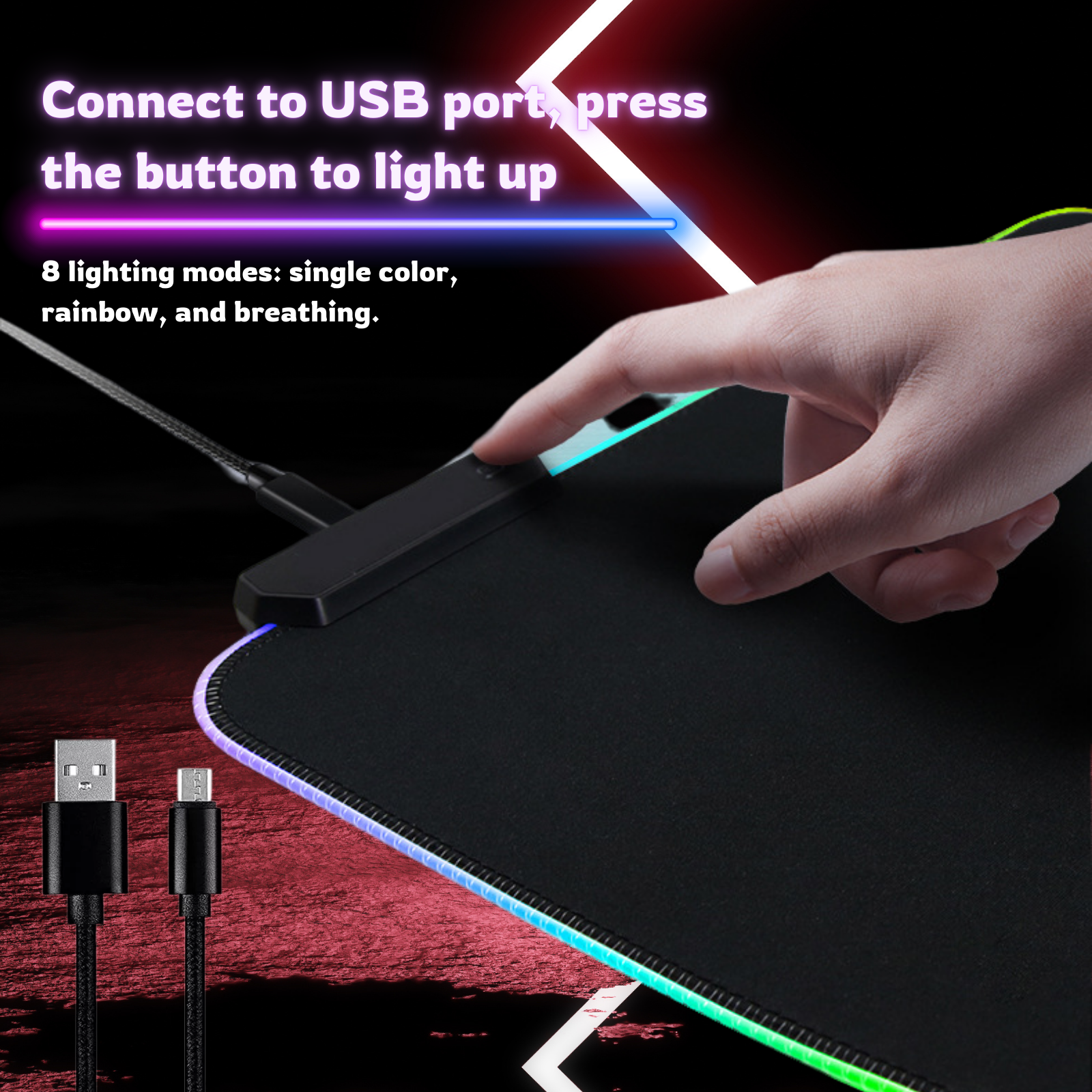 RGB LED Gaming Mouse Pad โ Light Up Your Setup! ๐ฎโจ Enhance your gaming or work setup with this RGB LED light-up mouse pad ! Featuring vibrant color modes and a smooth, anti-slip surface , itโs perfect for precise mouse control and an immersive experience. โ Dynamic RGB Lighting โ Multiple color modes: Single Color, Rainbow, Breathing โ Smooth & Durable โ Upgraded thickened design with precisely stitched edges ensures long-lasting performance. Built to resist fraying, peeling, and warping โ Non-Slip Rubber Base โ Stays firmly in place during intense gameplay โ USB Powered & Easy to Use โ Plug & play with one-touch control Upgrade your desk today with this must-have gaming accessory! ๐ฅ