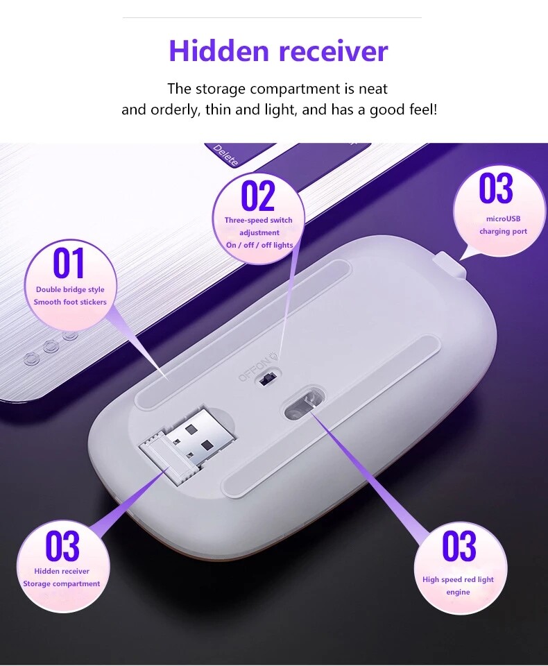 Wireless Mouse Bluetooth 5.0 RGB Rechargeable Ergonomic for Laptop and computer: Item specifics: Operating system requirements: -- Bluetooth + Wireless : Windows 8 / Windows 10 / Android 5.0 / IOS 13 / MacOS 10.10 -- Wireless : Windows XP / Windows 7 / Windows 8 / Windows 10 / Android 4.4 / IOS 13 / MacOS 10.10 / Linux Kernel 2.6+2 / Chrome OS Hardware configuration requirements: -- Bluetooth + Wireless : Bluetooth 4.0 and later version -- Wireless : USB port Feature 1. LED version: Work time breathing lamp work, more cool, increase the fun at work, ease work pressure 2. NO LED version: No led lighting when working, Simple design, suitable for you who like simple life. 3. Silent Design: The left and right click are both silence, no sound when you click 4. 3 kinds DPI adjustable provides precise positioning Specification 1. Name: Rechagreable wireless mouse 2. Weight: anout 120G 3. The Max DPI: 1600 DPI ( Ajustable DPI Switch: 800 / 1200 /1600 DPI ) 4. WiFi Range: 10M 5. Battery: Rechargeable 6. Charging Cable Length: About 50 cm 7. Switch Life: 10 M illion T imes 8. Size: 112 *57 *20mm 9. Support System: Windows / Mac Welcome to my store I appreciate that you believe in me and I will do everything to keep you satisfied If there is a problem please write me and I promise to handle it in the best way possible shipping: - Free shipping worldwide from Israel - Dispatch time: 1-2 working days after cleared payment - Shipping time: 14-30 working days (sometimes quicker for AU, UK, USA & Canada) - Shipments to Russia, Ukraine and South American countries may take up to 45 days. - Shipping using Israel Airmail Postal Service - Products are shipped with a tracking number - You can shorten the delivery time using EMS/FedEx/UPS. Please contact us, and we will check the costs for your location. - Buyer should expect to pay any amount charged by the government of bidder's country. This includes but not limited to duty & tax. Payment : - We receive payment by PayPal only . It is your best protection as a buyer. Returns : We offer 30 Day Return Policy, however, all items purchased must be returned in the same condition as they were received in, unopened and in its original condition. - Please inspect your items when they are received. - Shipping & handling fees are non-refundable. Feel free to ask a question I promise to answer up to 24 hours I'm here for you Thank you for your trust and purchase