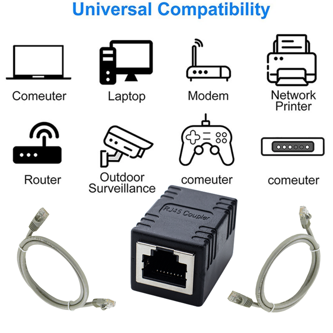 You will receive 4 Cables RJ45 (6 feet each) + 2 adapter RJ45 Female to Female. High Performance and Compatibility. 6 Pack RJ45 Cable and Coupler Set This set includes two RJ45 cables and one RJ45 coupler, ideal for connecting your Ethernet devices and extending your network. The cables are 6 feet long and have high-quality connectors that ensure fast and stable data transmission. The coupler is a female-to-female adapter that allows you to join two RJ45 cables together. Whether you need to connect your computer, printer, phone, TV, or other device to a local area network or the Internet, this set will provide you with a reliable and convenient solution. Order now and enjoy the benefits of RJ45 connectivity! Fast Speed: The Ethernet coupler and the 6 inch RJ45 can speed up to 1 gigabite for connecting. High quality 100% copper: Installerparts patch cables are made f 100% bare copper wire with 50 micron gold plated RJ45 plugs. Our cables use high quality, long-lasting materials and feature A highly durable design at an affordable price. RJ45 Coupler Usage: This extender is ideal for extending ethernet connection by connecting the 2 short network cables together. Safe and Secure : With nickel plated contacts and easy snap-in retaining clip, the coupler ensure a secure and corrosion free connection. PERFORMANCE: Transmits data at speeds up to 1,000 Mbps (or 1 Gigabit per second); 10x faster than Cat-5 cables (100 Mbps)