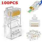 Description: 1. 100% new material, durable to use. 2. Gold plated RJ45 CAT6 end pass through ethernet RJ45 connector plugs let you quickly and easily create category 6 cables in preferred lengths. 3. These connectors have a hole in front ,the rj45 cable can pass through the rj45 connector. 4. Use for the rj45 ethernet cable of 23AWG. 5. CAT6 grade 8-pin connectors suitable for use with stranded or solid CAT6, CAT5E, or CAT5 twisted pair wire. Package Included: -50/100/200pcs RJ-45 LAN Cable Plugs Item Specifics Type : Modular Plug Brand : Unbranded Material : Plastic MPN : Does Not Apply Country/Region of Manufacture : China Model : NO Features : Pass Through Style : Modern Connector A : Cat 5, Cat 5e, Cat 6, RJ45, Connector B : RJ45 Port Female Color : Clear