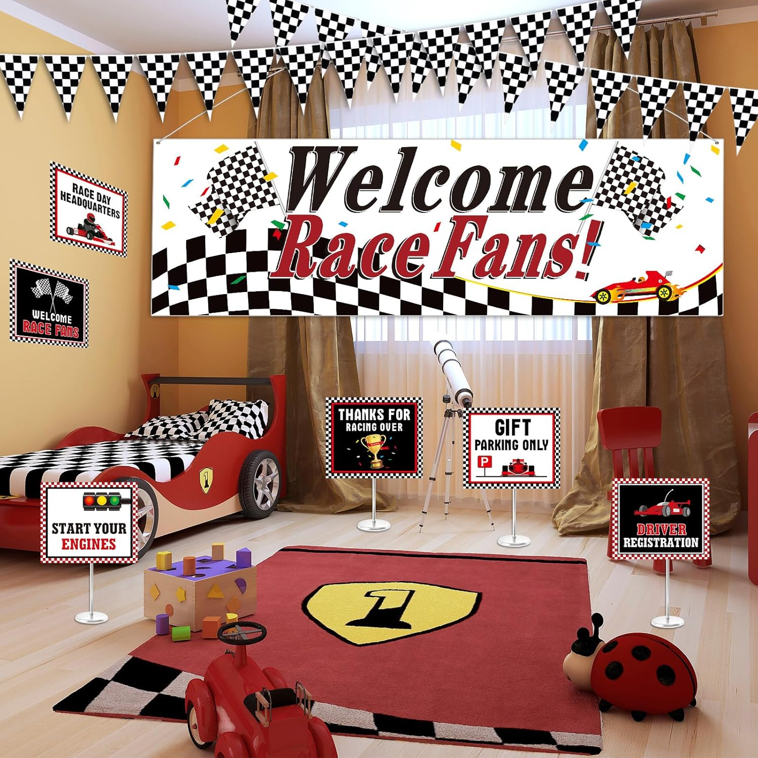 Store New Arrivals Add to Favorite View Feedback Contact Racing Car Party Decorations Set 9 Racing Party Signs 2 Black and White Checkered Flags Pennant Banner 1 Welcome Race Fans Banner Backdrop Race Car Birthday Supplies Description Item model number NS--1320 Color multicolor Product Dimensions 12.6"L x 12.6"W Material Paper, Fabric Specific Uses For Product Indoor, Outdoor Item Weight 13.1 ounces Theme Vehicle Recommended Uses For Product Car, Decor, Home, Outdoor Occasion Birthday Target Audience Car Enthusiasts, Racing Fans, Children's Parties Included Components Grommet, Rope Package Content: you will receive a race car party decorations set containing 2 pieces of 8 ft race car pennant banner, 9 pieces of race car signs and 1 pieces of race car banner; The racing party supplies will add a lot of fun memories to the party Race Car Party Supplies Set: the racing car checkered flags, the race signs and the racing banner are designed around the race car theme, paired with classic black and white colors, can easily satisfy the tastes of racing fans and car enthusiasts Quality Material: the racing pennant banners and race car signs are made of quality paper material, the racing car banner is made of quality fabric, not easy to break, reusable for various occasions, like racing car birthday decorations, car-themed events Easy to Use: our checkered flag comes pre-assembled as all the pieces are connected on strings; The race party signs come with adhesive dots so you can stick them to anywhere; The racing banner has 4 holes on the corner and a long rope for easy hanging Wide Application: this race car birthday party decorations set can be widely applied for race car parties, car themed birthday parties, game parties, sports events, picnics and outdoor activities, bringing a lot of fun and creating a cheerful atmosphere Feature: Suitable Size: Each racing car pennant banner measures about 13.4 x 9.5 inches, each car party sign size is around 10-11.8 inches, and each race car banner measures about 25.5 x 59 inches, big enough to decorate your race car theme party or club events Race Car Birthday Decorations: Racing car party decorations feature a classic racing car themed design to bring you an exciting race car party atmosphere, will create a racing zone feeling inside your home and bring your guests a big surprise Basic information: Material: paper, fabric Color: multicolor Package include: 9 x race car party signs 2 x checkered flags 1 x race car banner Notes: Manual measurement, there may be slight differences in size. Due to the screen display, the color of the item may differ slightly from the picture. ABOUT US We offer the best prices around on high quality products. Our E-store includes media such as books, movies, music and games while offering electronics, toys, sporting apparel, clothing, tools, general home, garden items and more. SHIPPING We are always working hard to ensure your package arrives as soon as possible. Please understand that some factors like weather, high postal traffic, and the performance of shipping companies are outside of our control. We offer free shipping to the lower 48 states and ship within 2 business days of payment, usually sooner. We do not accept P.O. Boxes. Please provide a physical address. RETURNS We offer a 30-Day Return Policy on items which you are not completely satisfied with. You have the option for a full-refund or an exchange of the item. No returns are available on items shipped outside of the USA. PAYMENT We accept PayPal. CONTACT US This page content is yet to come Please ad us to your favorite seller and visit again later Thank You CUSTOMER SATISFACTION We try our very best to make sure every customer is completely satisfied. If there's a problem, message us! We're happy to help.