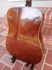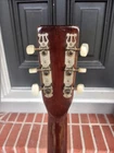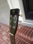 Rare early 1960s Yamaha Youn-Gin Dreadnought. Not alot of info out there on these guitars. What I have read over the years is they were made in 1962/63 for Yamaha by Young-Gin guitars in South Korea. These were supposed to be Yamaha's early entry in budget guitars. Young-Gin guitars has a good reputation in Korea for higher quality budget guitars. However I belive there was no trade agreements with China or Korea at that time and not alot of these guitars made it to the states. If your a Yamaha fan like me this is a nice addtion to your collection that plays and sounds great as well. The guitar it's self is in great structural and mechanical shape with a few cosmetic issuses. Guitar measures at 41" lenght, 12" widest point at top bout and 15 1/2" widest at bottom bout. 4" dept at top and 4 1/2" dept at bottom. 25 1/2" play scale. 20 frets with a zero fret. All smooth on the ends with only lite ware. Neck is thin and taperd making it very fast. Nut size 1 5/8". Just installed new set of D'Addario 12/53s strings. Action is 4.5mm at the 12th fret. No buzzing or dead spots. 3 + 3 open gear tuners are nice quality and hold tune well after new string break in. Very well built high quality binding work front and back of body. Guitar has no wood damage of any kind, No crackes, no seperations, no pull on bridge, No bulging of body. All bracing is tight, no hidden repairs. Bridge is level with no crackes. When I first bought the guitar it had a frat medal gluded to the upper left part of body. When medal was removed it took the finish with it. See last 3 pictures. Guitar also had some sort of message wrote on the front lower right side ( see last 3 pictures ) and looks as if someone tryed to preserve it with some sort of clear coat. Back of guitar has only very lite swirling and lite finish scratches that are hard to see. Over all condition of this 60 year all guitar is very good..Nice collectable and very playable guitar. Does not have case but will use extreme caution when packing for shipment. Happy to answer any questions. Standard shipping is inside 48 states only. UPS ground or FedX home depending on delivery area.