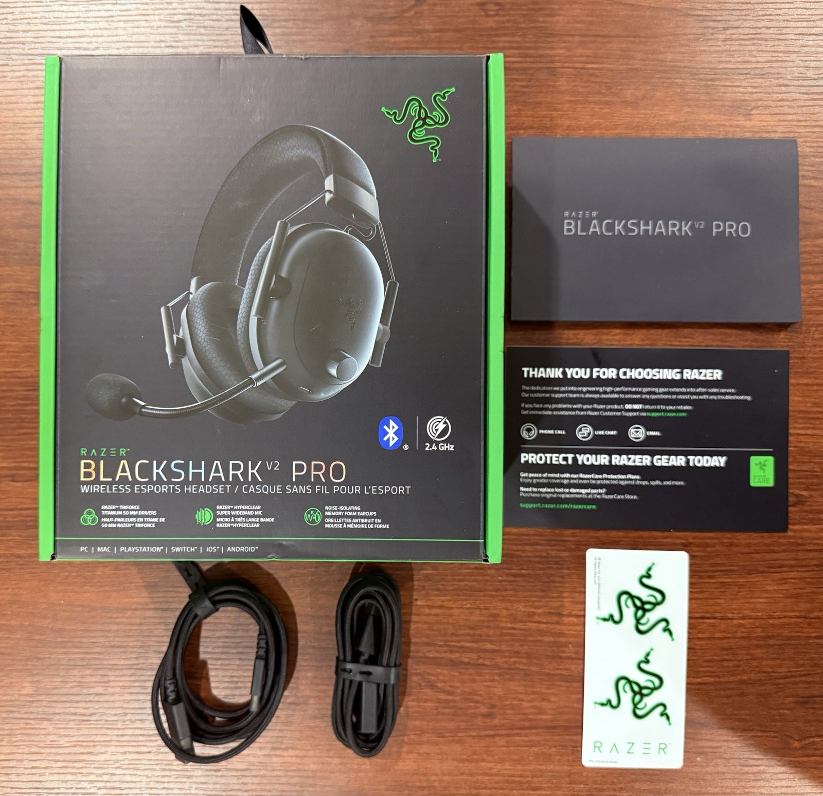 Just got the Razer BlackShark V2 Pro and it’s amazing! Super comfy with memory foam cushions, and the sound is crisp with THX Spatial Audio. The wireless connection is flawless, battery lasts forever, and the mic is crystal clear. Barely used and in perfect condition—feels brand new. Super happy with this purchase!