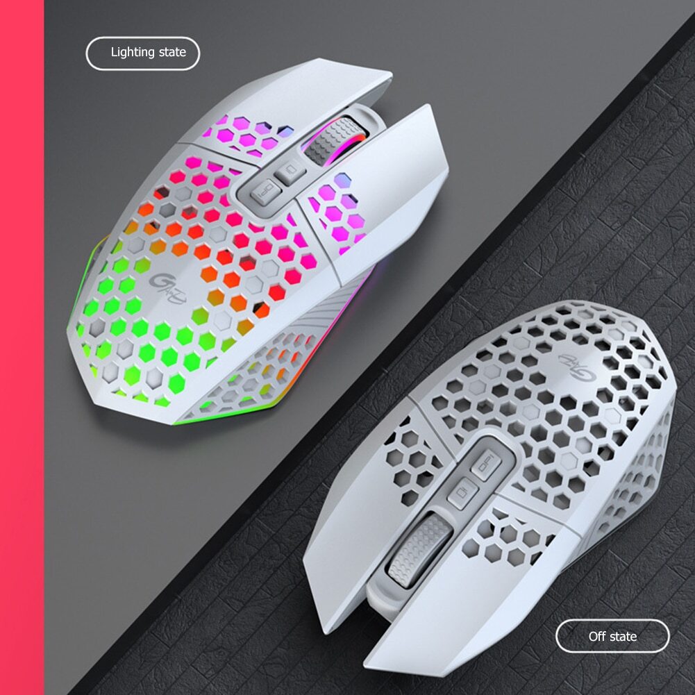 X801 8 Buttons Wireless Gaming Mouse Honeycomb 3 Gears 1600 DPI Adjustable RGB Rechargeable Mice for Desktop Laptop Feature: Honeycomb hollow design. Return to the desktop with one click. Intimate mute button. Power saving design. Low voltage indication. RGB lighting effect. 3 gears DPI adjustment. 10m wireless transmission. Specification: Model: X801 Color: Black, White Working Method: Wireless Working Distance: 10m/32.81ft Number Of Keys: 8 Buttons Power Supply Mode: Rechargeable Lithium Battery Charging Time: 3-5 H Receiver: External Receiver DPI Value: 800-1200-1600DPI (Default 1200DPI) Size: 132 X 72 X 42mm/5.2 X 2.83 X 1.65" Mouse Weight: About 95g Note: 1. Due to the different monitor and light effect, the actual color of the item might be slightly different from the color showed on the pictures. Thank you! 2. Please allow 1-3mm measuring deviation due to manual measurement. 1 X Mouse 1 X Receiver 1 X Charging Cable 1 X Manual