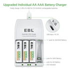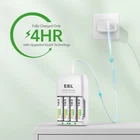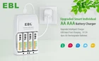 Features of Battery Charger 1. Individual battery charger could optional charge 1,2,3,4 different AA AAA Ni-MH Ni-CD rechargeable batteries. 2. Corresponded LED indicators to show the charging progress clearly: RED--charging. Green--fully charged 3. Constantly charging current and voltage keep the battery owns a longer using life. 4. Fast Smart Charger: Adopt 5V 2A USB input, fast charging capacity, greatly improving the adaptability of the product, easy take for travel using also. Features of Batteries 1. Quantity: 4 Counts AA 2300mAh Ni-MH rechargeable batteries. 2. Voltage: 1.2V 3. High Performance and ProCyco Technology - extend the lifespan of aa rechargeable batteries. 4. Precharged 15%~20% of capacity by solar energy. Could be used when you get it. 5. Excellent charge/discharge performance, the batteries will keep a high quality after 3-5 times charge & discharge when used in the first time or long time no used. Brand EBL Color White Item Weight 7.9 Ounces Output Voltage 1.2 Volts Input Voltage 5 Volts Package Included 1x EBL 4 Slot battery charger 1* USB Cable 4x EBL 2300mAh AA Ni-MH batteries 1x User Manual On Jul 31, 2024 at 07:55:25 PDT, seller added the following information: