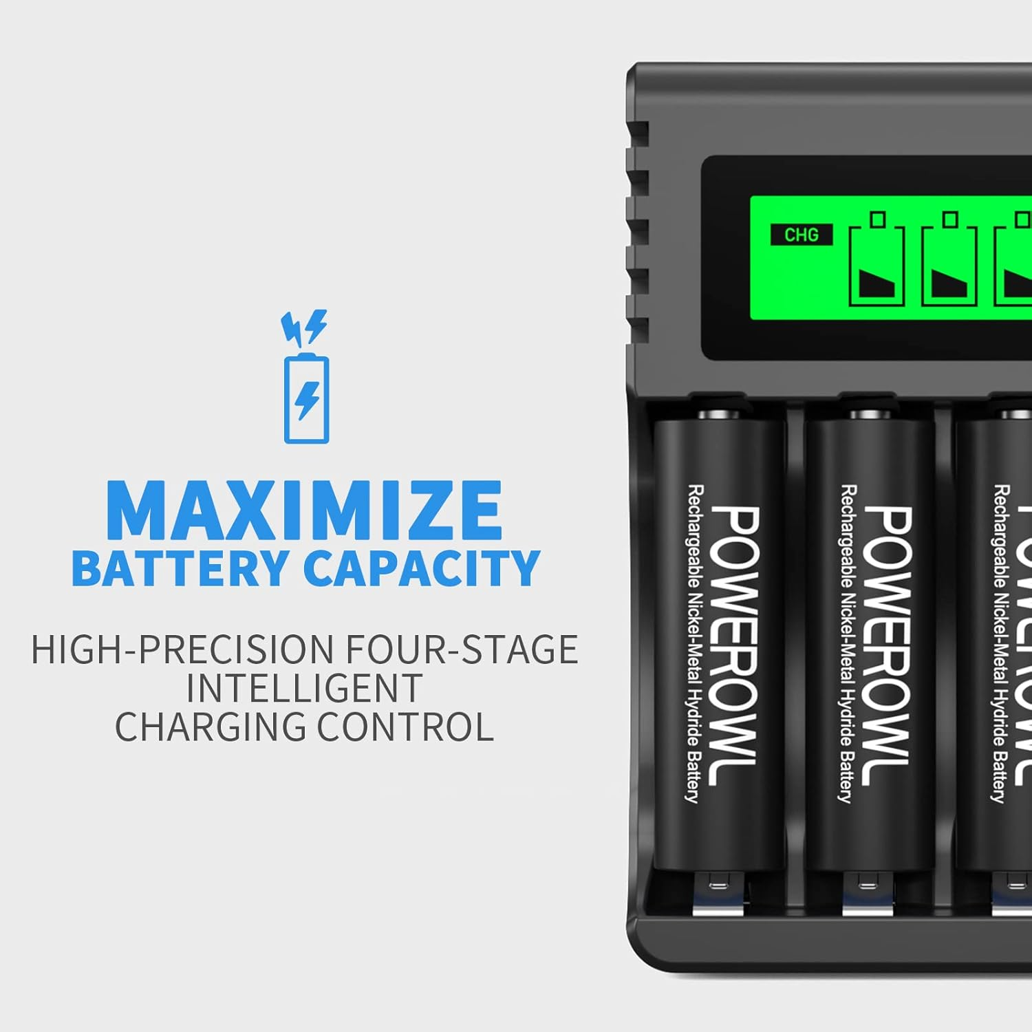 High capacity, long-lasting: Pack of 8 2800mAh AA rechargeable batteries and comes with a 4-slot LCD charger Longer life: Powerowl rechargeable battery can be recharged more than 1200 times and retains 70% charge after 3 years of non-use AA battery charger uses trickle charging to extend battery life and charge up to 99%, this charger is only suitable for charging AA/AAA Ni-MH or Ni-Cd rechargeable batteries High-quality, intelligence:The POWEROWL smart charger has passed the US safety certification, comes with chip control, will automatically stop charging when the battery is fully charged and has an LCD display Wide range of applications: The battery can be widely used in various electronic devices below 1.5V, including digital cameras, electric toothbrushes, alarm clocks, TV remote controls, game controller and flashlights and other electronic devices that require AA batteries Compatible with xbox controller battery pack, for Xbox One/Xbox Series X|S Xbox One S/Xbox One X/Xbox One Elite Wireless Controller Product Description 1 1200 CYCLES 2 2800mAh 3 PERFORMANCE 4 SELF-DISCHARGE The video showcases the product in use. The video guides you through product setup. The video compares multiple products. The video shows the product being unpacked. What is the reason for choosing Powerowl? SAFETY: POWEROWL started in 1996, ensuring high-capacity battery cells with stable and safe performance due to years of technological expertise. PEACE OF MIND: POWEROWL offers a free replacement service for any quality issues within 2 years. Do powerowl batteries (1.2V) in comparison with alkaline batteries (1.5V) work in every battery based appliance? Appliances are designed to work within the voltage range of 1.5V to 0.9V. Although the initial voltage of Ni-MH rechargeable batteries is around 1.2V, they are capable of maintaining a steady discharge level for as long as they hold capacity Can I use a different brand charger for my powerowl batteries? We always recommend an powerowl charger. Most of the other manufacturers’ chargers will also be able to charge your batteries, but batteries may not be able to reach top performance What are the reasons for NiMH battery not being able to charge? One common reason for NiMH battery being unable to charge is over-discharging. PREVENTIVE MEASURES: 1.Recharge the battery immediately when it is completely depleted or when the voltage drops below 1.0V. 2.Use battery charger with repair function Do batteries come with leak-proof protection? Why do some people encounter NiMH battery leakage? Powerowl batteries are designed to be leak-proof. Overcharging is the main cause of battery leakage. When selecting a charger, it is crucial to choose one that will automatically cut off power once the battery is fully charged.