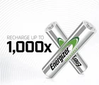 8 pack of Energizer Recharge Universal Rechargeable AAA Batteries Energizer AAA batteries offer up to a 5 year battery life for long lasting AAA cell batteries Energizer rechargeable batteries reduce waste and save money when used with an Energizer Battery Charger with 4 AAA batteries to meet your needs NiMH AAA batteries made with 15% recycled materials and chargeable batteries are designed to prevent leaks Use AAA rechargeable batteries in all types of devices for convenient AAA rechargeable battery use with less waste Triple A batteries in this AAA battery pack can be charged hundreds of times