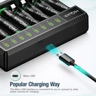 For Charger Feature: 【2 Hours Fast Charging】Adopting 600mA pulse current charging, safer but faster than other battery charger. Quick charging aaa 1100mAh batteries in 2 hours or aa 2800mAh batteries in 4.5 hours. 【Independent Charging 】8 independent charging design, convenient for you to charging any number of 1-8 AA and AAA batteries. 【Smart LED Display】The HiQuick aa aaa battery charger could show red light when charging and show green light when batteries are fully charged, easy to help you know the charging process of each battery. 【Convenient Charging Port 】The AA AAA charger build-in Micro USB Input make the battery charger can be powered by adapter, car, power bank, computer, convenient charging in anywhere. 【Intelligent Protection】the charger also adopt microcomputer control technology, which could effectively prevent over charge, over current, over voltage, over heat and short circuit conditions. Specification : Brand: HiQuick Compatible Devices: Aa aaa nimh nicad rechargeable batteries Input: Micro USB DC 5V/2A Output: 1.2VDC 600mA ±10% Battery Charging Rate: ≥85% Charging Way: Constant voltage and current control Size: 125mm*85mm*28mm Weight: 98g (No batteries included) Color Black Compatible Devices: aa aaa nimh nicad rechargeable batteries Included Components :usb cable Input Voltage: 5.0 volts Item Weight :3.46 ounces Model Number :sw-8n Output Voltage: 1.2 volts Size :SW-8N Charger UNSPSC Code :26111704 For AA&AAA Battery Feature: HiQuick 8 packs Ni-MH rechargeable batteries. 4 packs of AA1.2V 2800mAh and 4 packs of 1.2V AAA 1100mAh. HiQuick batteries, can be recharged for 1200 times when fully or partially drained, save money and protect environment. Low self discharge, HiQuick batteries maintain 80% of capacity after 24 months of non-use. HiQuick batteries can be used anywhere and can replace conventional batteries in all devices, ideal for solar lights, digital cameras, toys, remote controls, hand held games, 2-way radios, PDAs, flashlights, alarm-clocks, LCD-TVs, toothbrushes, shavers and portable audio players etc. PLEASE CHARGE FULLY BEFORE USE, AS WE ONLY CHARGE THE BATTERY TO 20% FOR SHIPPING SAFETY PURPOSE. Batteries will reach top performance after 3-5 time fully charge cycle. Specification : Type: Ni-MH Size: AA/AAA Voltage: 1.2V Capacity: 2800mAh/1100mAh Recycle: 1200 times Package Included: 4 x AA 2800mAh 4 x AAA 1100mah 1 x Charger