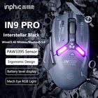 NOTE: Default configuration for 1K receiver, 8K receiver needs to be purchased separately Connect the 8k receiver to your computer via a USB Type-C cable, press and hold the DPI button on the mouse to re pair and unlock the 8000Hz return rate feature Improve wireless speed and reduce signal interference Product parameters: Product model: IN9 PRO Sensor: Primary phase PAW3395 Product size: 129x80x43mm Weight: 92 ± 3g Resolution: 800/1600/3200/6500/13200/26000DPI (DPI can be customized and adjusted by installing drivers) Chip: Shanghai Broadcom Return rate: 125/250/500/1000Hz (adjustable driver installation) Connection method: wired/2.4G wireless/Bluetooth 5.0 Micro motion: Huanuo Green Transparent White Spot 100 million times Rated working current: ≤ 8mA Foot patches: Teflon foot patches Battery capacity: 500mAH Charging interface: Type-C Operating system: Windows XP and above series, suitable for general-purpose mouse systems Packaging List: 1× Mouse 1×1K Receiver 1× Instruction Manual 1× Type-C Charging Cord Supports three connection methods: Wired connection、2.4G wireless、 Bluetooth 5.0 Ergonomic design, conforms to the palm, comfortable grip Original PAW3395 flagship optical sensor 50-26000DPI, from simple Word to intense FPS, meets delicate micro operations in various scenarios 500mAH high battery capacity, intelligent power-saving technology, with a maximum battery life of 120h 16.8 million color illusion RGB monochrome/breathing/multi-color switching 6-key custom macro programming, battery level display. The PTFE material foot patch allows for smooth movement without slipping, providing a stable and textured feel. Anti slip roller with clear markings, providing a better browsing experience up and down