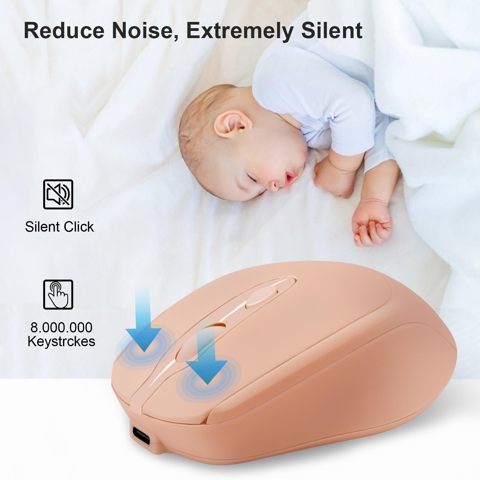 Bluetooth Mouse with Dual Mode (BT 5.2 2.4GHz): The dual mode wireless mouse enables free switching between two devices with a simple switch with just one mouse. It can connect one device via Bluetooth and another via a 2.4GHz USB receiver.Please note that you can't use Bluetooth mode and 2.4G mode at the same time. Universal Compatibility: 2.4Hz Wireless Mode works with the laptop, desktop or any devices with USB port, simply plug in the USB receiver, plug and play.Bluetooth mode works with Windows, Android and MAC OS system.Please Note: BT5.2 System Requirement: Windows 8.0, Windows 10 or later; Mac OS X 10.10 or later;iPad OS 13 or later/ Android 5.0 or later. Please check or update the operating system before using. Plug & Play: Wireless mouse comes with a tiny USB Nano receiver (stored within the back of the mouse), plug it into your PC. It can move freely within a range of up to 33 feet using 2.4 GHz wireless transmission. With 3 adjustable precision levels (800/1200/1600 DPI), you can freely choose your cursor speed. Quiet Click: Special soundless design for the right and left buttons, won’t disturb others. Ergonomic design with elegant profile provides maximum support and comfort for your hand, making it ideal for working, creating, or playing in any space. USB-C Quick Charging: A rechargeable built-in battery and a USB-C to A charging cable included. There is no need to change batteries. The wireless mouse will turn to sleep mode in 10mins of inactivity for energy saving, can be easily activated by clicking any buttons.
