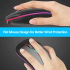【Upgraded Version LED Design】Upgraded version wireless mouse with the LED lights. The bottom of cordless mouse has a switch, support independent opening of basic mouse functions and decorative breathing light mode. When you turn on the LED light mode, it can be cyclically transformed into a variety of different colors add fun to boring work and life. 【Rechargeable and Super Energy saving】Led wireless mouse has a built-in 500mAh durable rechargeable battery, it can be easily charged using the included USB cable without replacing the battery. Just 2-3 hours charging, it will last for 7 to 15 days. USB wireless mouse goes into hibernation after 10 minutes of no operation to save energy, wake up with a click of any mouse button. 【3 Adjustable DPI and Silent Click】3 DPI Settings of 1000, 1200 and 1600, free to meet different working needs. We have made special processing for mouse buttons to meet most people's pursuit of silent mouse. Ergonomic design and suitable button strength make you comfortable enough to work and study. 【Silm and Portable】RGB Optical Mouse about 4.41 x 2.26 x 1.06 inch, and the weight is about 75g, lightweight and slim. Portable wireless mouse perfect for travelling carry and it can be easily put into your laptop bag or pockets, ultra-space saving. 【Wide Compatibility and Long Warranty】RGB wireless mouse fits for almost all devices including PC, Macbook, desktop, laptop, tablet and iPad, and well compatible with Windows 7/ 8/ 10/ XP, iOS, Android, Vista and more. Warm Tips: If your laptop just with Type-C port, You need connect the supplied Type-C to USB adapter to your laptop and plug the USB receiver in to it. Backed by 60-day money back, 1-year replacement.