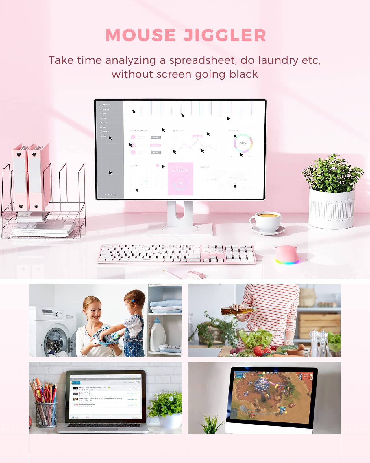 Wireless Mouse, Mouse Jiggler for Laptop - LED Mouse Rechargeable Computer Mouse Mover Undetectable Random Movement with On/Off Button Keeps Computer Awake - Pink Mouse Jiggler & Rechargeable LED Mouse 2 in 1 Design -- If you are doing your work on the computer, this would be a actual mouse with amazing LED colors, if you're not typing away or step away from your computer, this would be a Mouse mover which give you a little breathing room without having to worry about logging back into all your programs again(You will have to press the DPI button for 3 seconds to enter into jiggler mode) Random Movements & No Interfere with using Mouse -- The mouse produces random movements on the screen and it is very quiet in Jiggler Mode, when you back to the computer, no need to draw attention to the fact that you're using a jiggler, the cursor is under your control! It will enter Jiggler mode again after 5 seconds of inactivity Plug & Play Perfect for Laptops Only with Limited USB Port -- There is virtually no set up, you literally just plug it in and turn on the switch it works! Only 1 real mouse will be plugged in your computer, so no worries if you use using it with your laptop that only has one or two USB ports, and not bother to buy an adapter Separate On/Off Control for the Mouse and Jiggler Mode -- It serves its purpose and can be turned on and off, gives you simple and effective control, so you don’t have to plug it in and unplug it, cause not all the time you will need to run it Universal Compatibility & 12 Months Warranty -- Compatible with almost all USB-enabled Computers run of Windows XP, Windows 7, Windows 8, Windows 10, Mac OS. And this mouse is backed by 12-months warranty, just let us know if you have any issues with the mouse ordered. Mouse Jiggler & Rechargeable LED Mouse 2 in 1 Design -- If you are doing your work on the computer, this would be a actual mouse with amazing LED colors, if you're not typing away or step away from your computer, this would be a Mouse mover which give you a little breathing room without having to worry about logging back into all your programs again(You will have to press the DPI button for 3 seconds to enter into jiggler mode) Random Movements & No Interfere with using Mouse -- The mouse produces random movements on the screen and it is very quiet in Jiggler Mode, when you back to the computer, no need to draw attention to the fact that you're using a jiggler, the cursor is under your control! It will enter Jiggler mode again after 5 seconds of inactivity Plug & Play Perfect for Laptops Only with Limited USB Port -- There is virtually no set up, you literally just plug it in and turn on the switch it works! Only 1 real mouse will be plugged in your computer, so no worries if you use using it with your laptop that only has one or two USB ports, and not bother to buy an adapter Separate On/Off Control for the Mouse and Jiggler Mode -- It serves its purpose and can be turned on and off, gives you simple and effective control, so you don’t have to plug it in and unplug it, cause not all the time you will need to run it Universal Compatibility & 12 Months Warranty -- Compatible with almost all USB-enabled Computers run of Windows XP, Windows 7, Windows 8, Windows 10, Mac OS. And this mouse is backed by 12-months warranty, just let us know if you have any issues with the mouse ordered. Shipping from the USA All of our products are shipped from the USA, ensuring quick delivery to your destination. Payment We offer the following payment methods: PayPal, credit card, bank transfer, and eBay's secure payment system. Free Shipping & Free Returns Shipping within the USA is FREE. Additionally, any return is absolutely free for you. Risk-Free Purchase You have the option to return an item within 30 days without any justification. We cover the return shipping costs! Fast Shipping We ship immediately upon receipt of payment. Generally, the package is delivered within 2-3 days in the USA. If it takes longer, we will contact you. Quality and Costs Made in Europe, USA, China No customs fees or additional charges Total satisfaction guarantee Invoice with declared VAT available upon request in .pdf format Feedback Your feedback is very important to us. After you pay for your purchase, you will automatically receive positive feedback from us.
