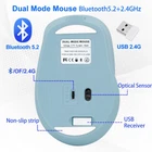 Rechargeable Wireless Mouse,Bluetooth 5.2 & 2.4G Portable Optical Mouse with USB Receiver,3 Adjustable DPI for Laptop,MacBook,PC,Windows, iPad,Android OS System ERGONOMIC DESIGN: Good surface coating technology given you a skin-like touch feeling. User-friendly design provide all-day comfort for work and entertainment, portable and pocket-sized perfect for travel, Mute design keeps away annoying clicks. Enable High-Efficiency Multiple Working Modes: 2 modes Mouse(BT5.2 + 2.4GHz), this Bluetooth wireless mouse realizes free switches between 2 devices in a wireless mouse only one Switch. Simple & convenient to work from the desktop to the tablet, or laptop to Macbook, ect. AUTO ENERGY-SAVINGSLEEPING MODE: Li-polymer batteries,high cycle life.the Auto Switch Off function will help you save energy as your bluetooth mouse will switch off when your PC is turned off or the receiver is disconnected. If you do not use the mouse for 5 minutes, it will go to sleeping mode, you can press the any button to weak it up. 3 Adjustable DPI Levels: 800/1200/1600 to meet different needs, comes with a USB receiver (stored in the back of the wireless mouse). No need any driver, and you can plug and play the wireless mouse directly, and advanced optical tracking technology ensures precise tracking on any surface. 2 in 1 Wireless Mouse : Bluetooth mode works with Windows/ Android/IOS/ MAC OS system. (The ipad and iphone software version must be ios13 or later)Easy to pair and connect. but for BT5.2 System just according to the Bluetooth version of your device, Please check and connect the correct system when using the wireless mouse; 2.4GHz mode works with laptop, desktop or any devices with USB port, simply plug in the USB receiver, plug and play. When the mouse connect to your iPad,so the direction of the movement is opposite to what you’re used to on your computer. You can change the settings to make it work like a regular computer mouse. Here’s how:Go to Settings - Select General - Trackpad & Mouse(The option will only appear when the mouse is connected, please confirm that the mouse is Bluetooth-connected to your iPad.) - Turn offthe “Natural Scrolling” Please charge the mouse with the computer interface for about 2 hours before the first time uses it. It's out of power if the mouse cursor moves slowly or stops moving. Please charge it in time.The green light beside the scroll wheel will be on while charging,and then goes off when the mouse is fully charged.