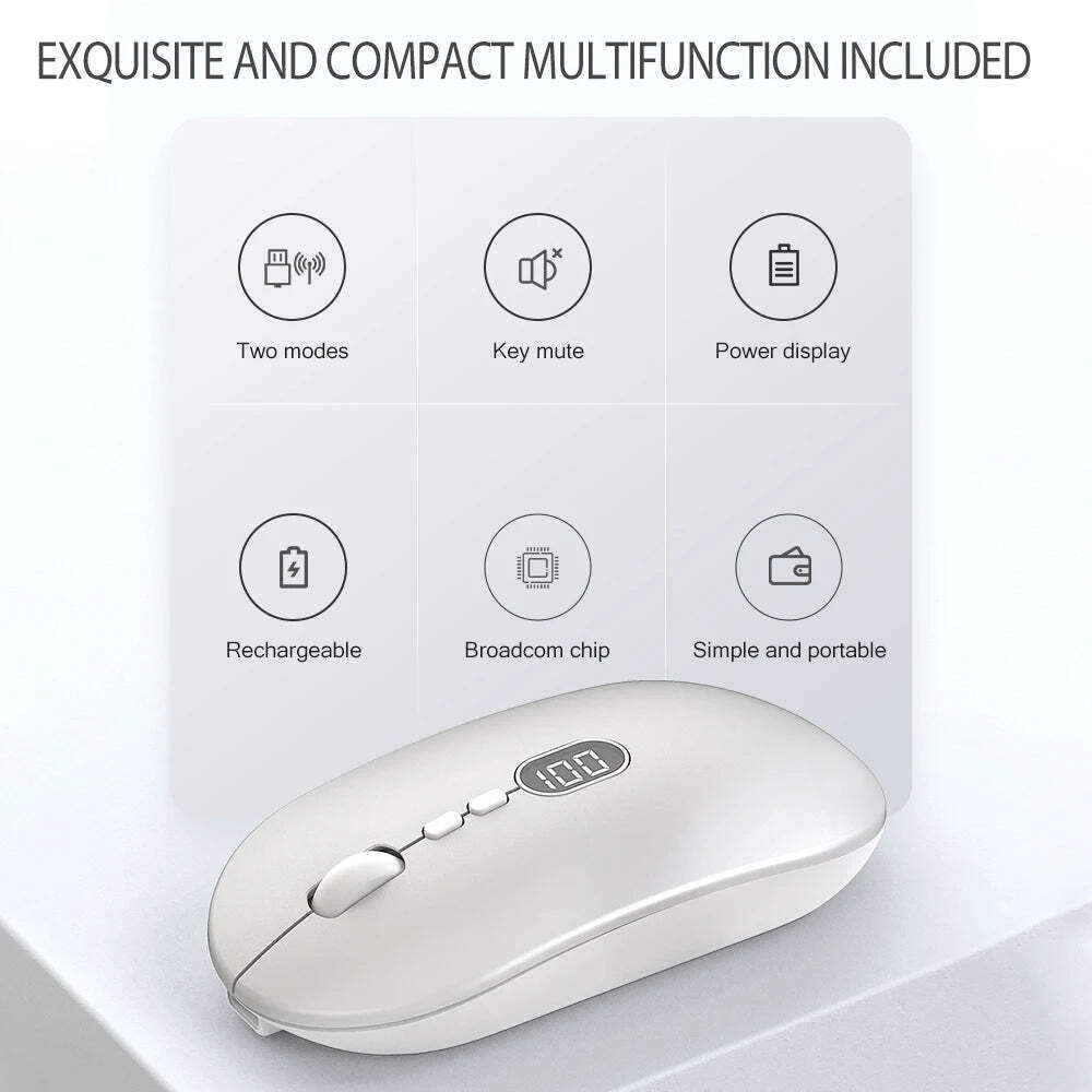This wireless mouse is a game-changer! Super smooth tracking with 2400 DPI, and the silent clicks are perfect for work or late-night browsing. Love the visible battery level—no more sudden power surprises. The ergonomic design feels great in hand, and the rechargeable feature saves money on batteries. Works flawlessly on both Windows and Mac, plus the 2.4G connection is super stable. Super portable and well-built—highly recommend for anyone needing a reliable, no-fuss mouse!