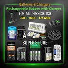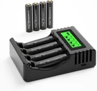 RECHARGEABLE BATTERIES WITH THIER CHARGER, Choose between AA or AAA or Mixed of both. (this is not a lot, you receive 1 piece per order). Fresh batteries long lasting and reusable. SUPER FAST FREE DELIVERY Rechargeable Batteries (Choose between 2 or 4 or 8 or 12 or 16 batteries with their charger). NOTE: we also sell an option of a coin battery that will work for scales, watches or remotes and more. The batteries rechargeable and have a long lasting life. The rechargeable batteries save money when you use the battery with a Battery Charger. AA or AAA rechargeable batteries made with recycled materials and chargeable batteries are designed to prevent leaks. Use the rechargeable batteries for photography camera or polaroid cameras, video game systems, TV remote controls, indoor or outdoor solar garden lights, led candles, electronics, toys, flash lights, led light and other digital devices for convenient use with less waste. The batteries can be charged hundreds of times. All The Battery Charger charge all standard rechargeable battery sizes (AA, AAA). Delivers a full-capacity charge to 4 AA or AAA batteries in a short amount of time (times may vary by NiMH battery). The LED light bar indicator alerts you to your batteries' charging status. Charges AA, AAA, and some chargers can charge 9V rechargeable batteries at a time. Built-in adapter and detachable cord allow for easy storage when not in use.