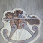 Vintage daisy kingdom rock along bear nursery decor. Adorable nursery wall decoration from Red Calliope. Brown teddy bear on brown rocking horse with soft blue rocker. Teddy bear sports an actual bow ribbon on his neck Quilted Measures approximated 32x34" Rings on back for easy hanging. Vintage from 1991 -Excellent, pre-owned, vintage condition. Minimal signs of previous use. Slight discoloration due to age but overall in great condition and a great addition to your new addition's room. Measurements included in photos - please inquire if more are needed. All offers considered - make one today! Style Profile: 1990s, vintage, 1991, rocking horse, teddy bear, wall art, hanging, nursery, baby decor, baby, bundle of joy, unisex, twee, newborn