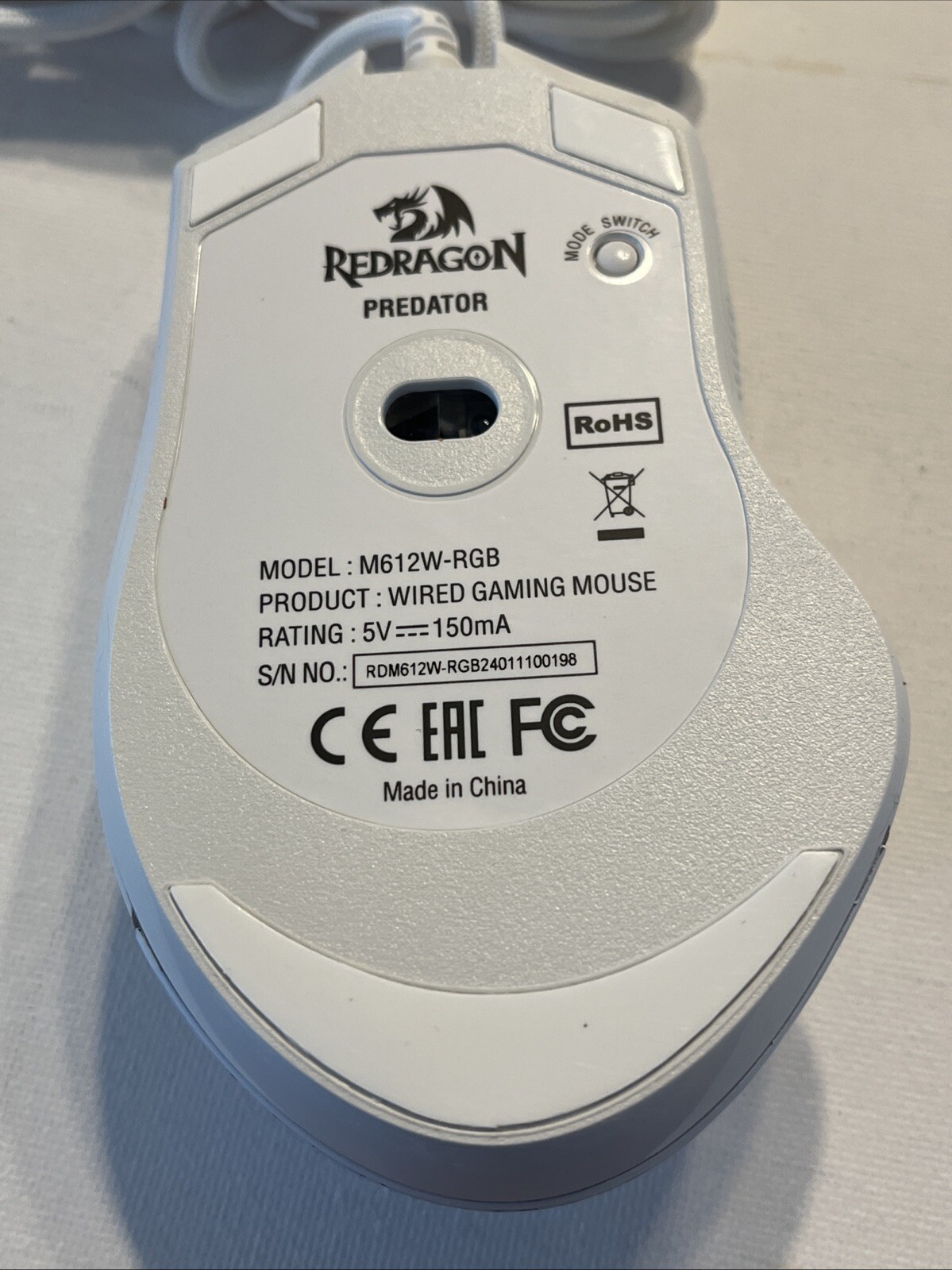 Tracking Method: Optical UPC: N/A Seller Notes: “In Excellent Pre-Owned condition” Color: White gtin13: N/A Features: 4-Way Scrolling, Adjustable DPI, LED Lighting, Programmable Buttons, Right-Handed only, Scroll Wheel, Thumb Button Number of Buttons: 11 Brand: DPI Model: M612 Predator Type: Gaming Mouse Maximum DPI: 8000 Connectivity: Wired