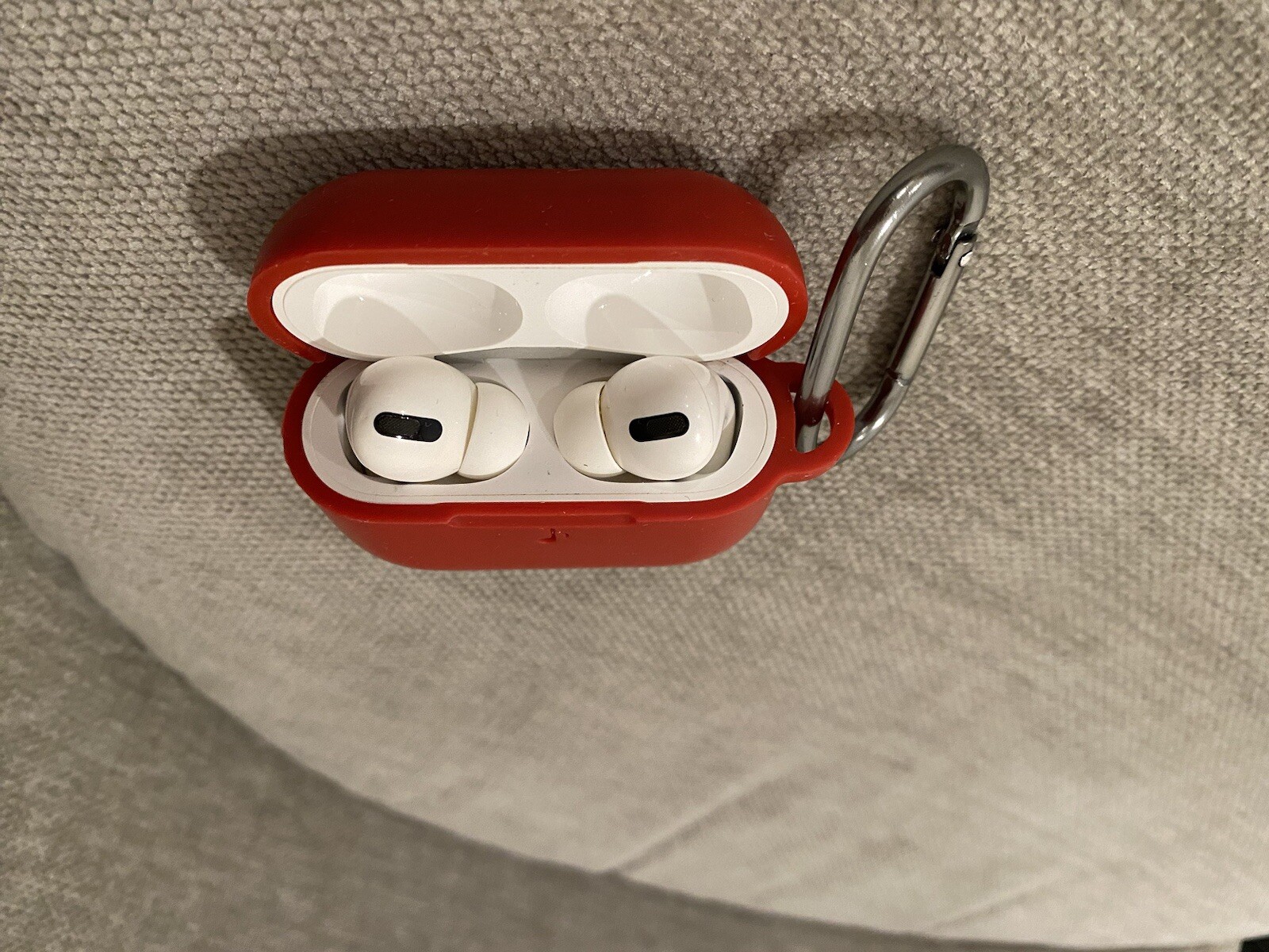 Airpods Pro (1st Generation, Used) First generation Airpods Pro purchased in 2021 for $229 + tax FLAW: Right side earbud gets static noise sometimes which makes it a bit annoying to use but otherwise overall good condition Comes with maroon red case, but can ship without the case if needed Kept clean, battery life is still decent- above mentioned static noise is only flaw Will ship with USPS ground advantage Considering offers from $35!