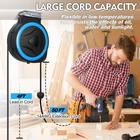 VERSATILE MOUNTING OPTIONS: Effortlessly install the Retractable Extension Cord Reel on walls or ceilings with its 180-degree rotating bracket, enhancing flexibility and efficiency in your workspace. TELESCOPIC CONVENIENCE: Enjoy the free to extend the heavy-duty 50 ft. power cord as needed, with an automatic retraction feature that prevents kinks and tangles for a smooth workflow. ENHANCED SAFETY FEATURES: Equipped with a built-in 13A circuit breaker, this UL-listed extension cord reel safeguards against short circuits and overloads, ensuring your work environment is safe. DURABLE & RESISTANT CORD: The 14AWG/3C SJTOW power cord is designed to withstand harsh conditions, being resistant to water, oil, and UV light, making it ideal for both indoor and challenging outdoor use. EFFICIENT POWER SUPPLY: With 3 grounded outlets and a 13 Amp circuit breaker, this retractable extension cord reel provides a reliable power source for multiple tools, ensuring optimal performance.