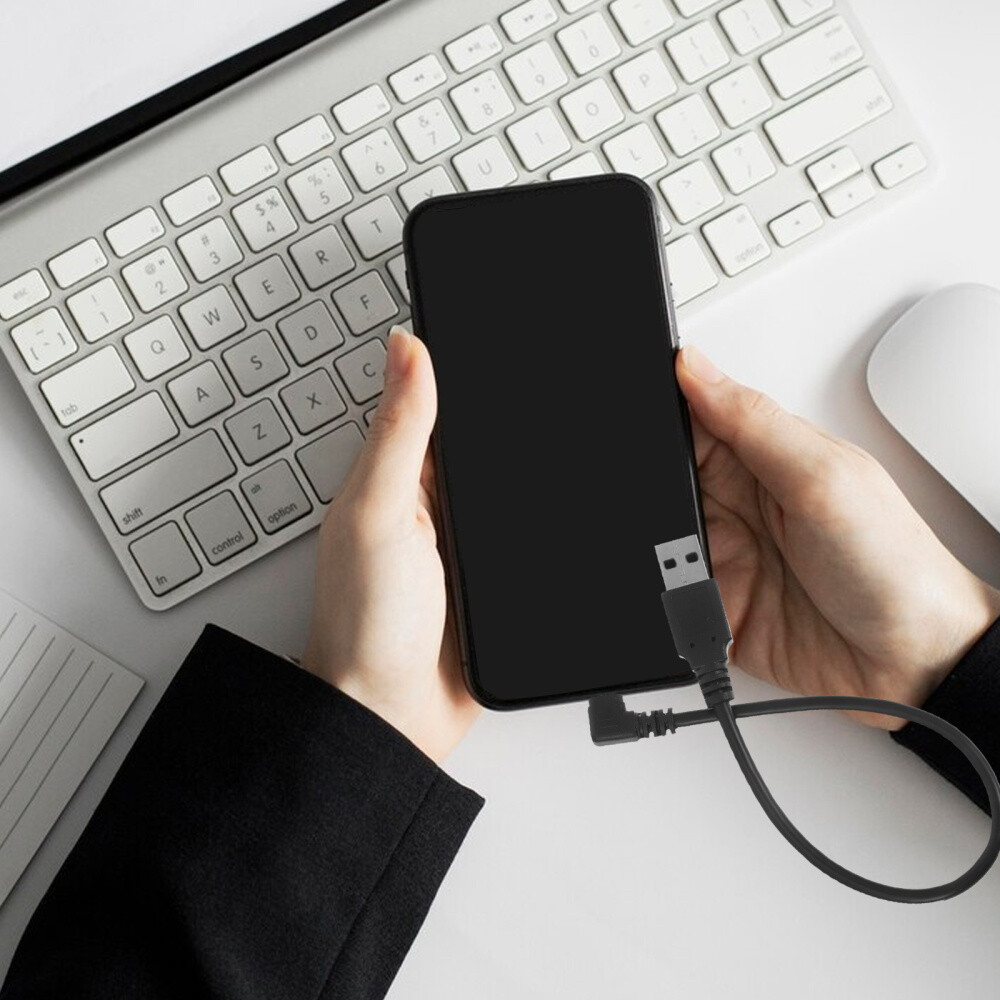This double elbow USB-C to micro right-angle cable is a game-changer for charging in tight spaces! The angled design keeps cords from bending awkwardly, and it charges my devices quickly without any connection issues. Perfect for bedside use or when ports are hard to reach—durable, convenient, and totally worth it!