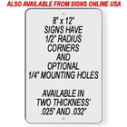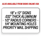 8" x 12" ALUMINUM SIGN .025 Thick Two 1/4" mounting holes centered in the 8" side Treated with Ultra UV Protection to prevent fading Printed directly onto the sign No decals or paint Won't fade, crack, peel or chip PREMIUM QUALITY Made In The U.S.A. FAST SHIPPING 100% COMPLETE SATISFACTION GUARANTEED Your item will arrive quickly and in perfect condition. If there is anything about the transaction that doesn't meet your expectations, or if your item is damaged in shipping by the post office, please send us a message and give us the opportunity to address your concern We promise to correct all problems to your complete satisfaction as quickly and easily as possible. EVERYTHING THAT WE SELL IS 100% MANUFACTURED IN THE UNITED STATES SINCE 1998 Thank you for supporting a family owned business This Item Is Also Available In Our Other Listings As An Aluminum Sign / Magnetic Sign / Vinyl Decal / Yard Sign Contact us for assistance and we'll provide the version that works best for you